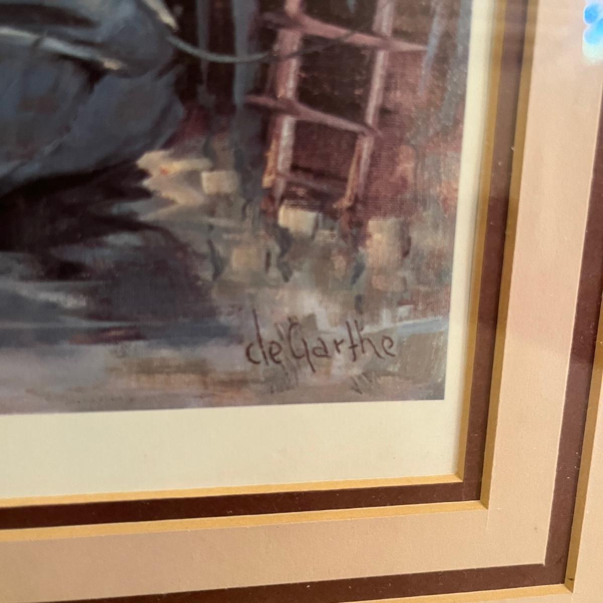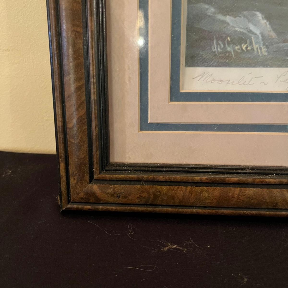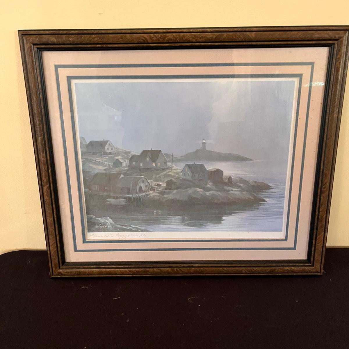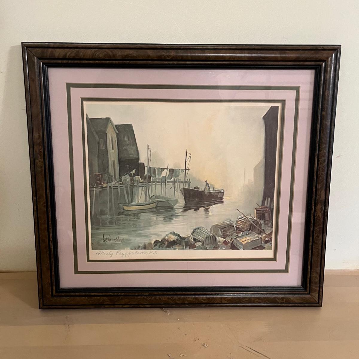 Lot includes five framed and matted prints by William DeGarthe. Titles are Handlining Peggy’s Cove N.S., Sheds on Peggy’s Cove N.S., Misty Peggy’s Cove, Moorilet Peggy’s Cove N.S. and Out of the Past Peggy’s Cove N.S. Largest frame measures 18” x 21.5”. Frames are wooden.