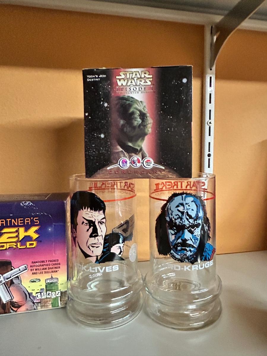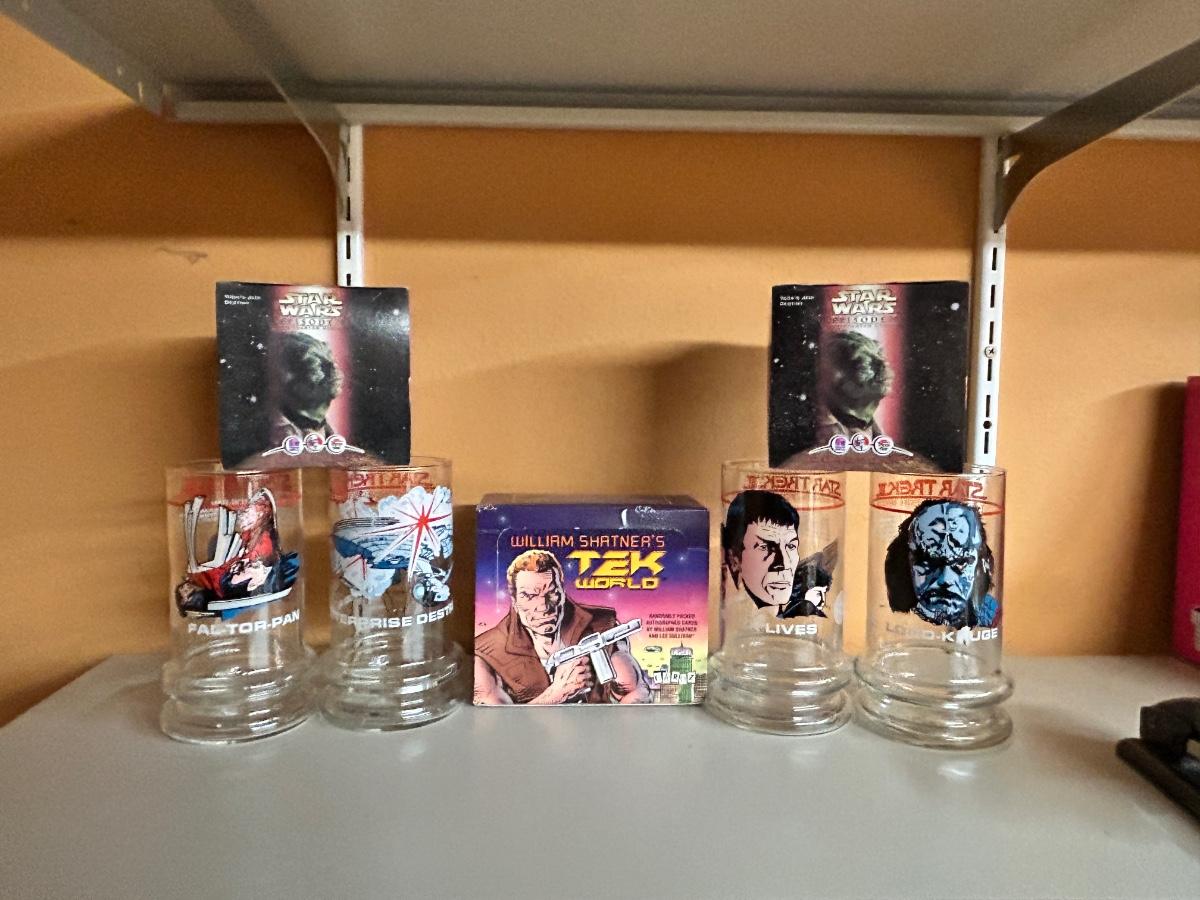 WILLIAM SHATNER TRADING CARDS, 1984 STAR TREK COLLECTIBLE GLASSES AND MORE