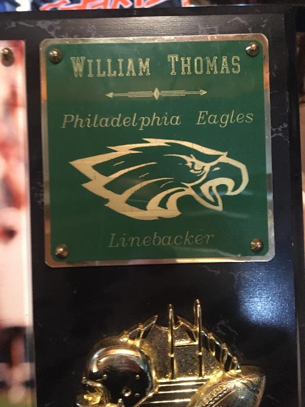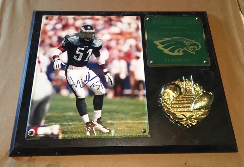 WILLIAM THOMAS Signed Philadelphia Eagles Plaque 15 x 12”.