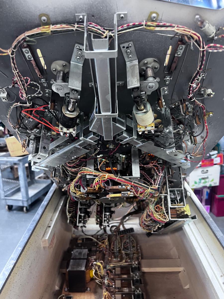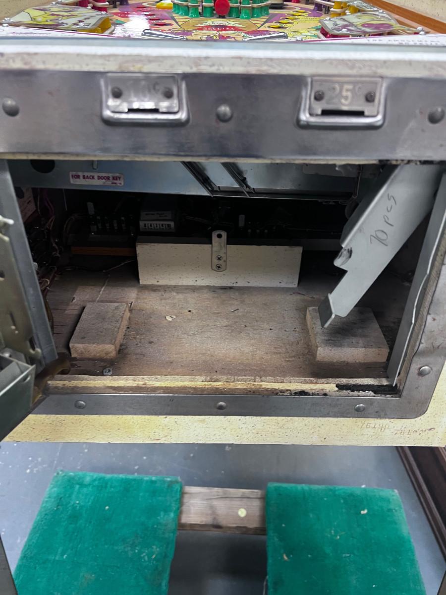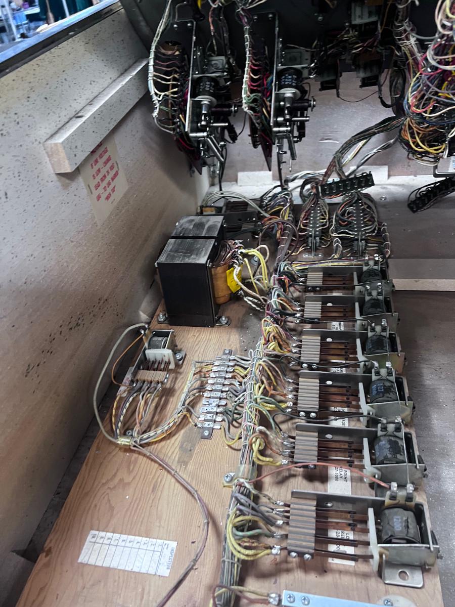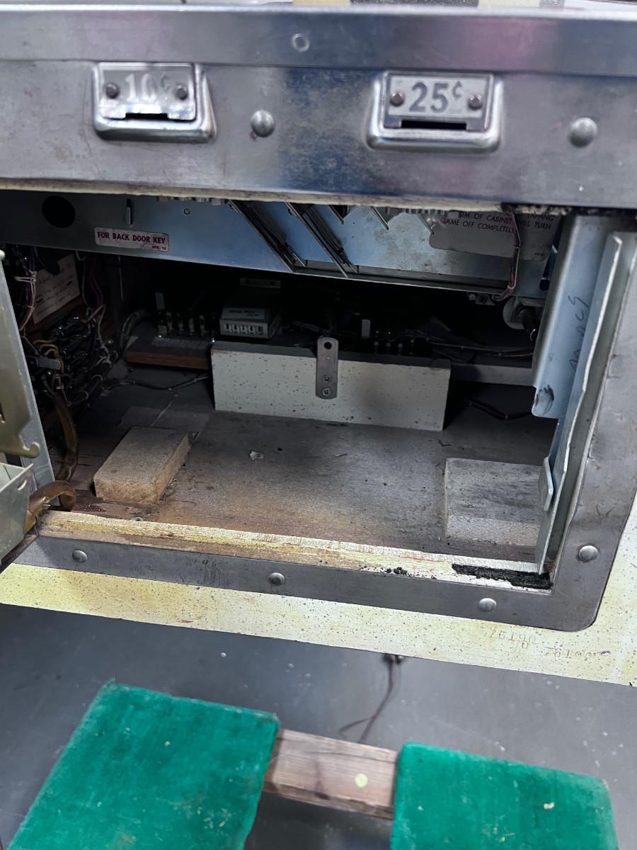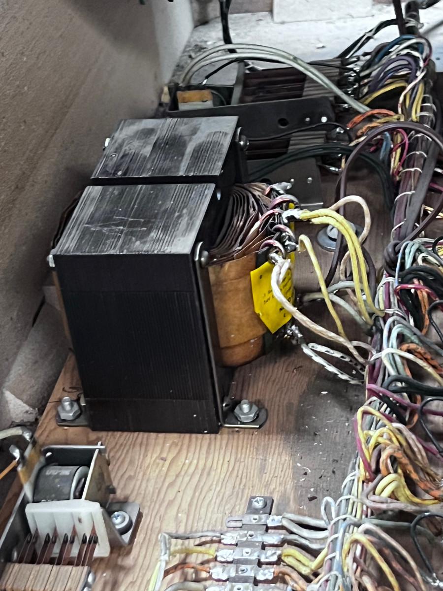 Item does not power up, we have had it looked add and believe it needs a new power transformer. It was in good working order before with everything intact except a coin mechanism. Sold as-is please bring loading help, back does come off.