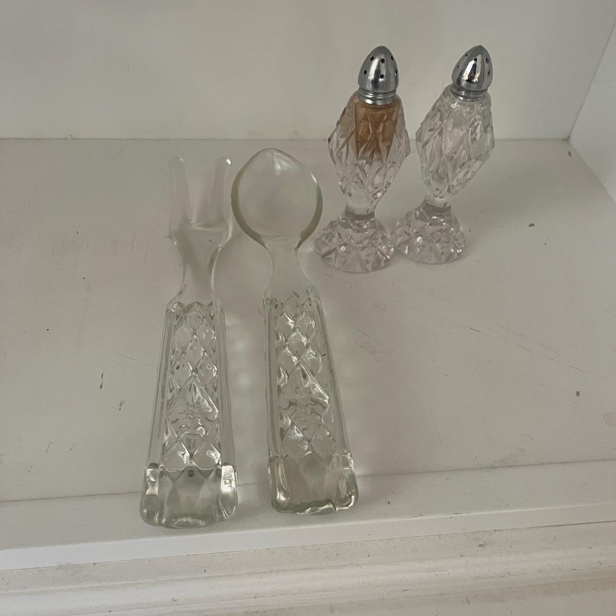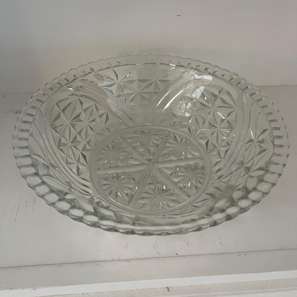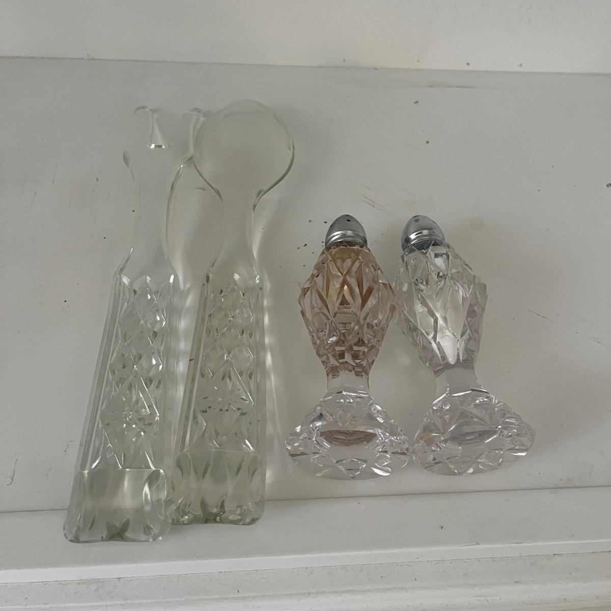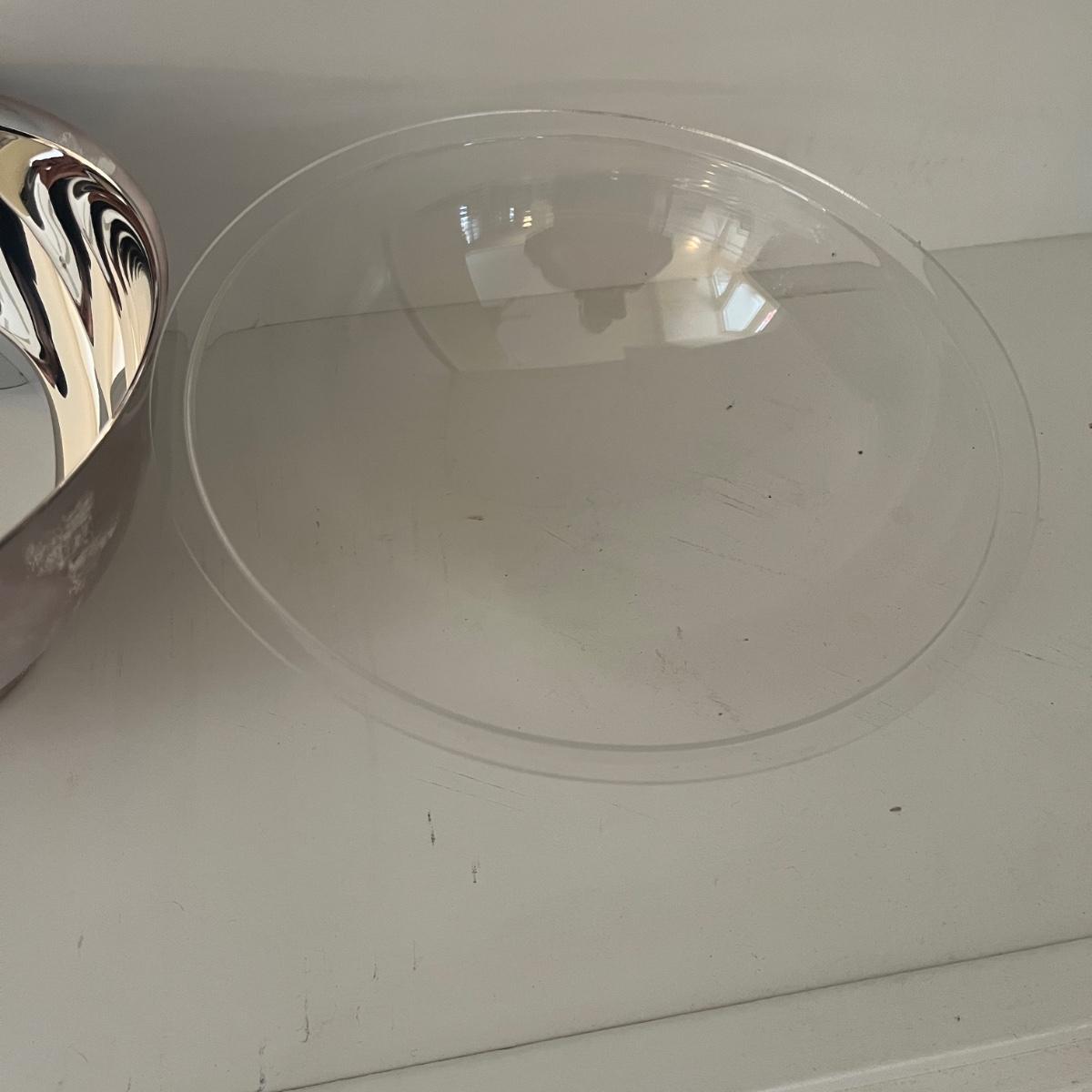 Lot includes a William Sonoma glass bowl, stainless steel chafing dish, Reed & Barton Silverplate bowl, four Silverplate bread-sized plates and a leaf shaped silverplate plate. Chafing dish measures 16” x 13” x 11”H. Also includes formed glass bowl and serving dish plate, glass salad fork and spoon and glass salt and pepper shakers.