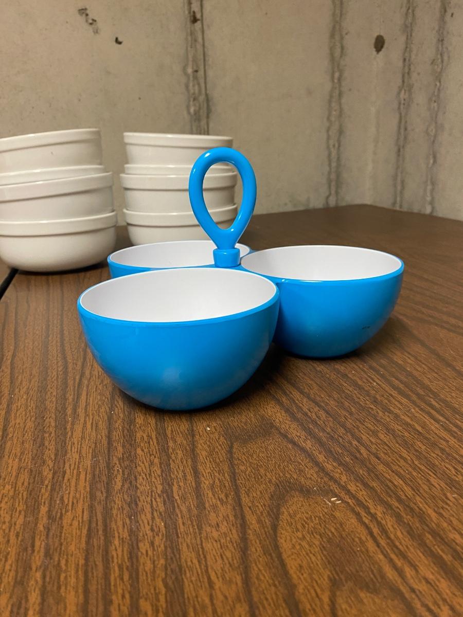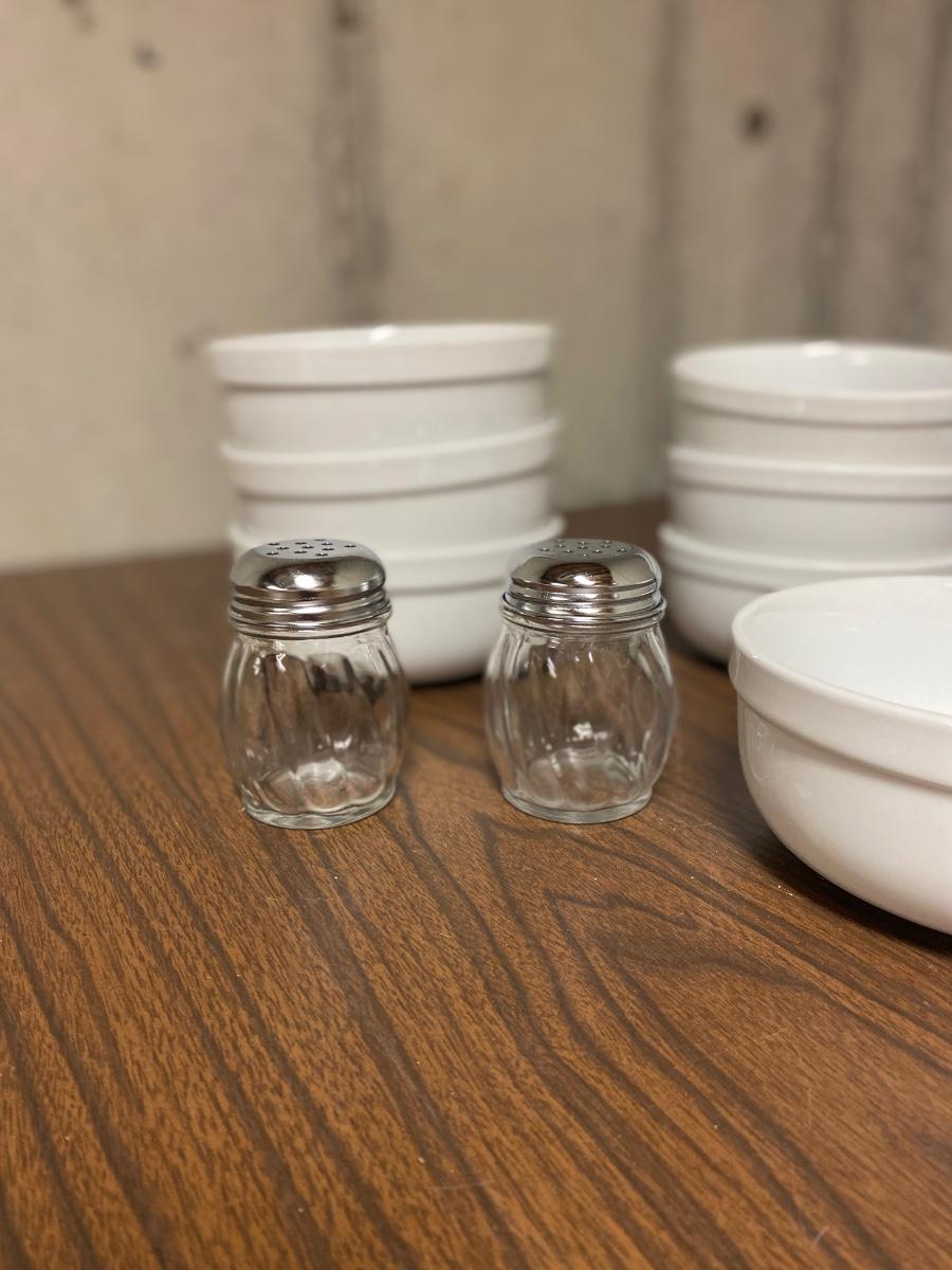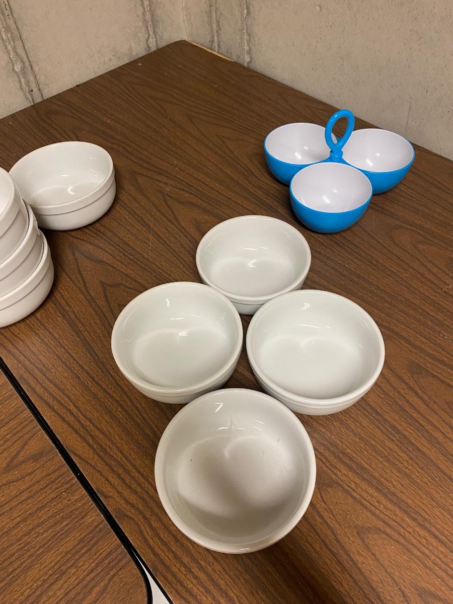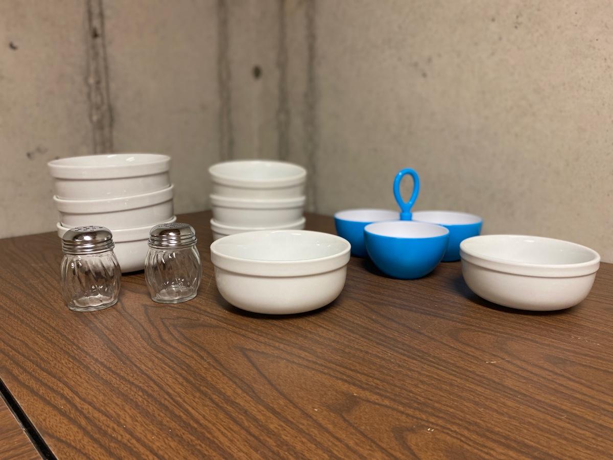 WILLIAMS- SONOMA BOWLS (TWO SIZES), DIP TRAY AND SHAKERS