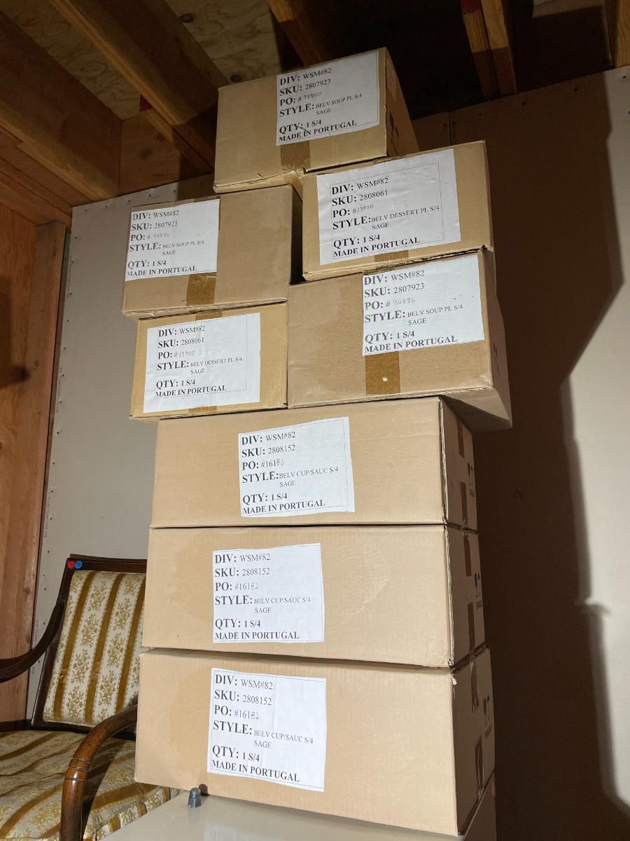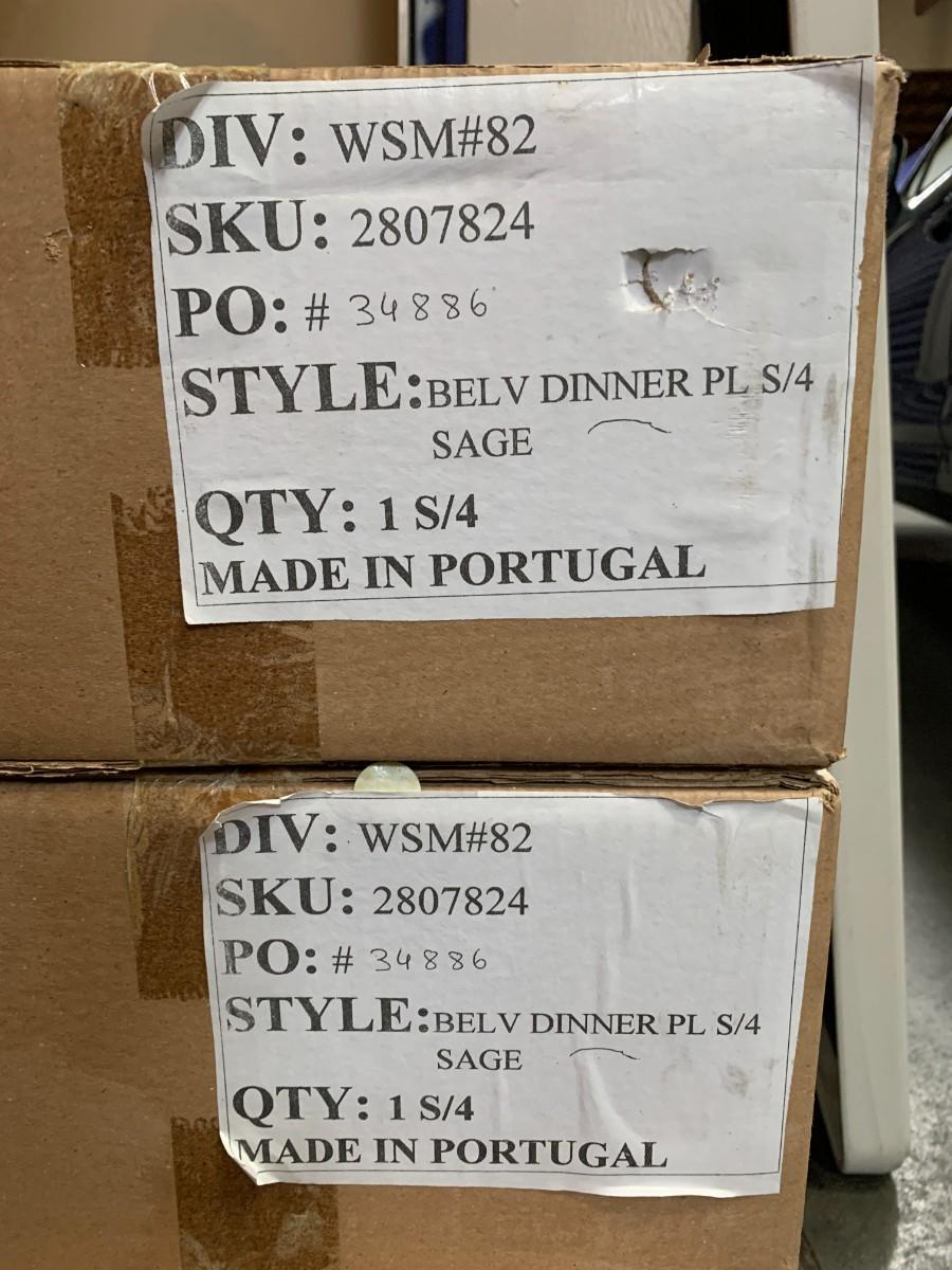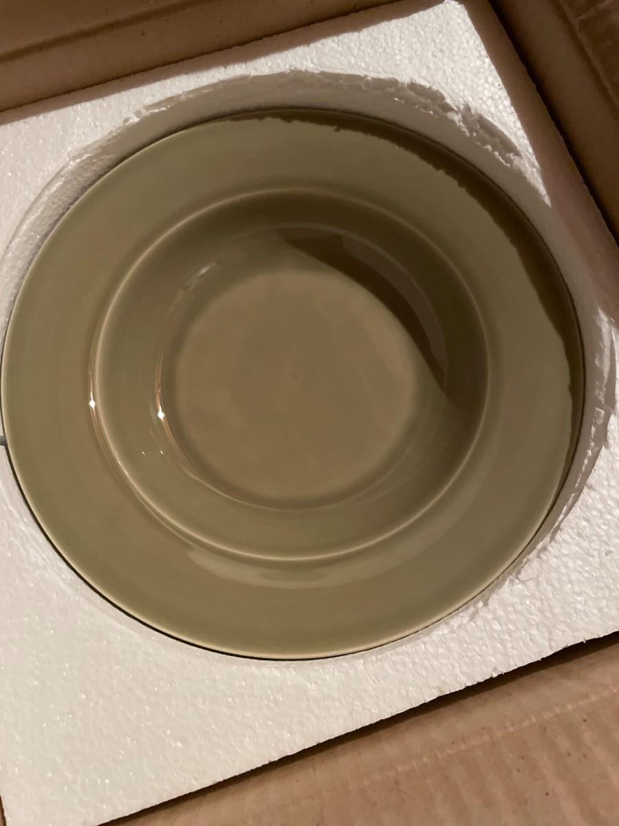 Sage color. Including: (8) Dinner plate, (12) Soup bowls, (8) Dessert plates, (12) Cups and saucers