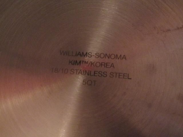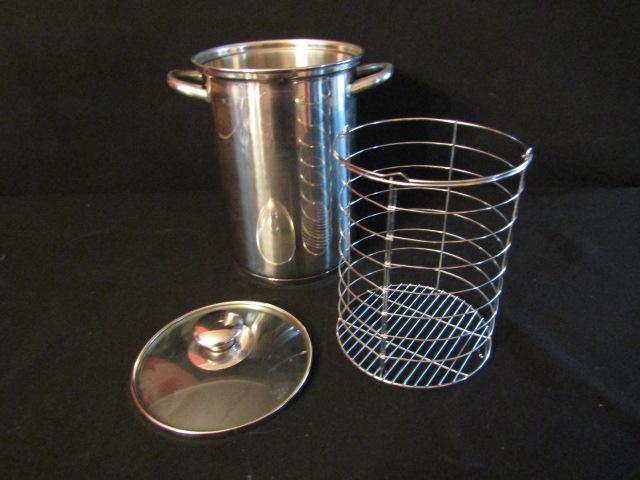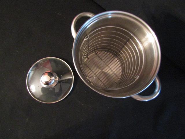 Williams Sonoma Stainless Steel 5 Quart Pot with Steaming Basket- 7" in Diameter x 9 1/2" High