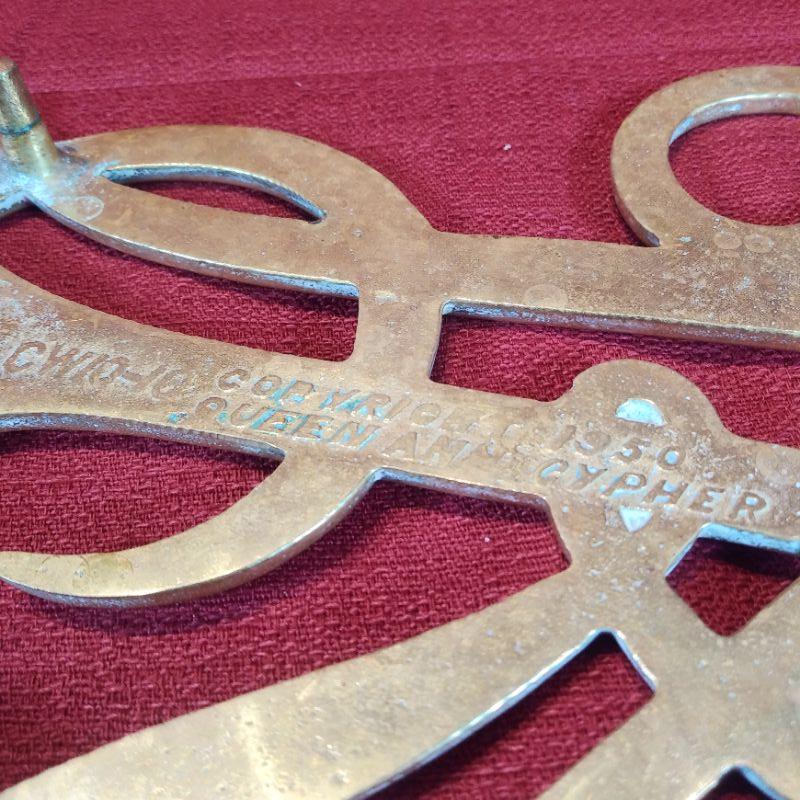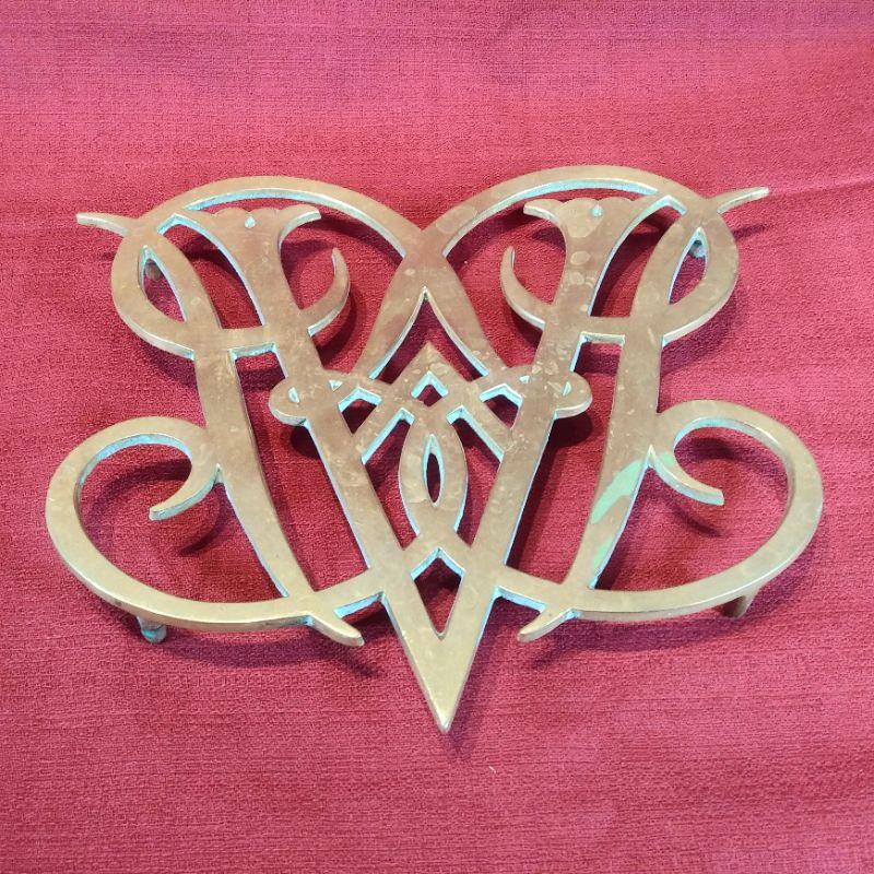 Solid Brass Trivit - Williamsburg, VA. Stamped on back CW10-10 Copyright 1950 Queen Ann Cypher.