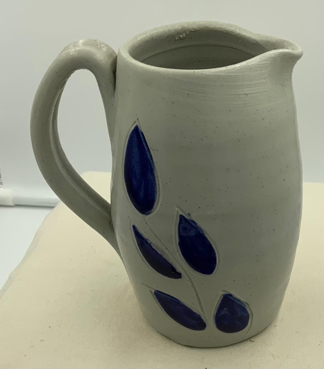 Great decorative pitcher from Williamsburg, Va. 5” x 5”. Cobalt leaf pattern. In perfect condition.