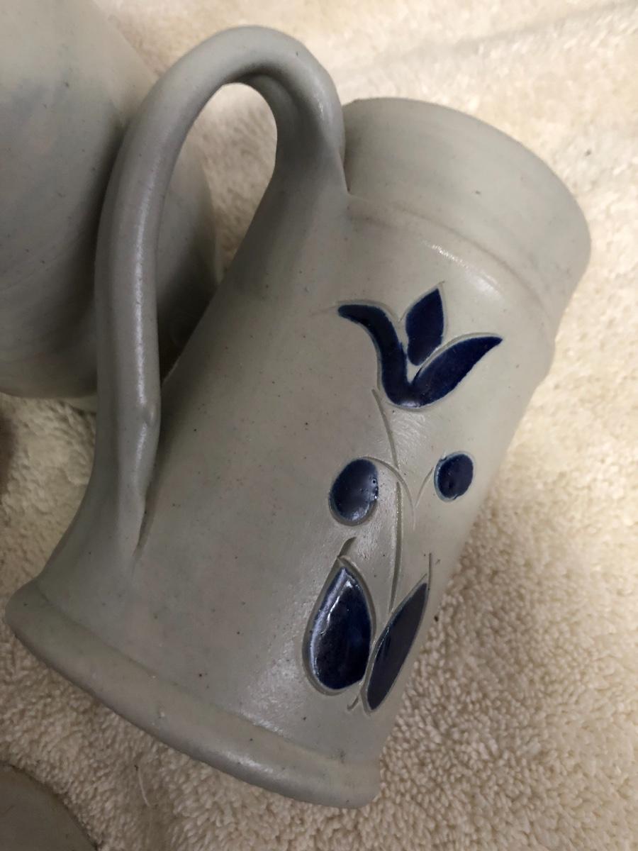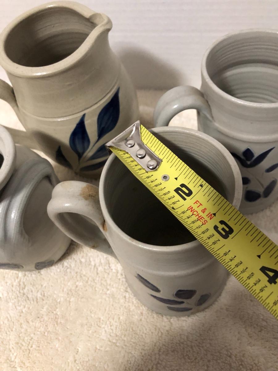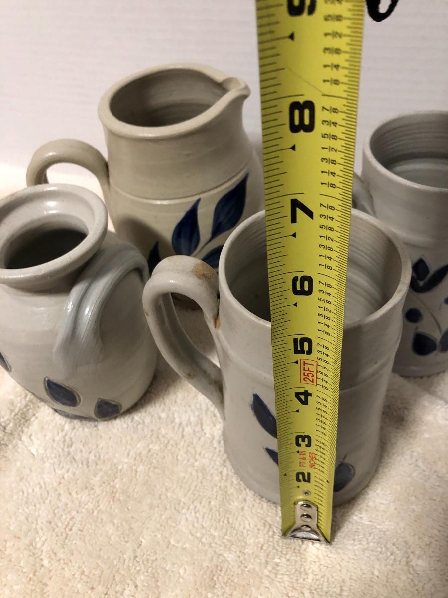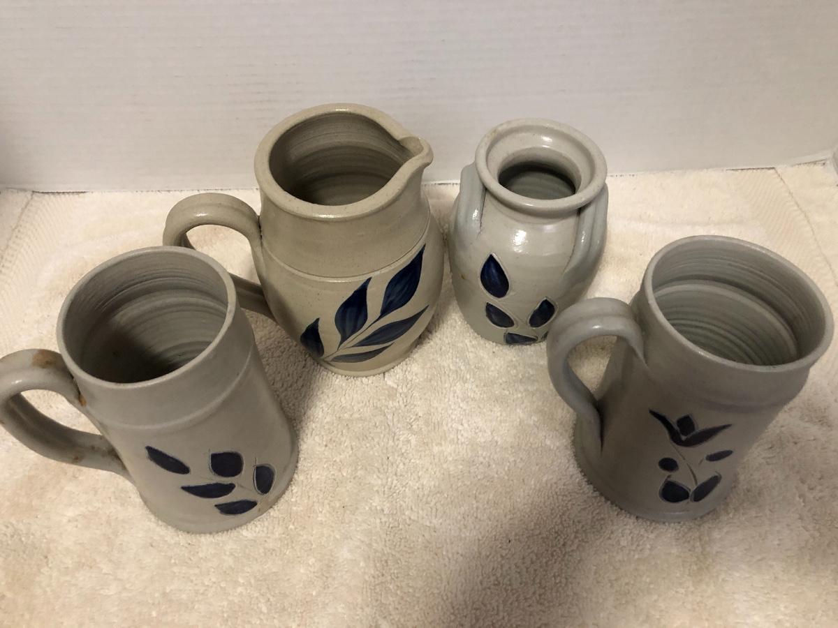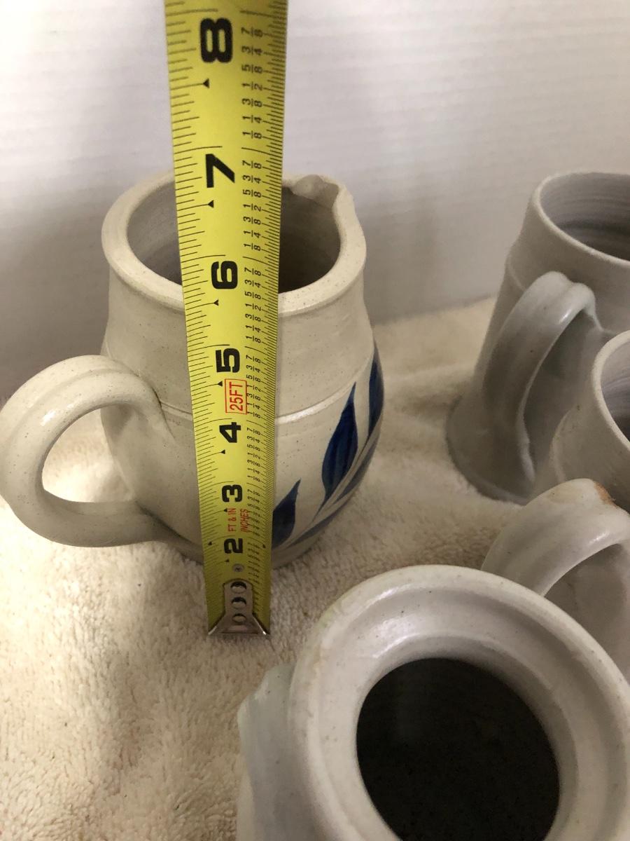 All items are sold as is, as found in the estate. Please see all photos for content, measurements and condition. Two mugs, pitcher and vase. Very good condition.
