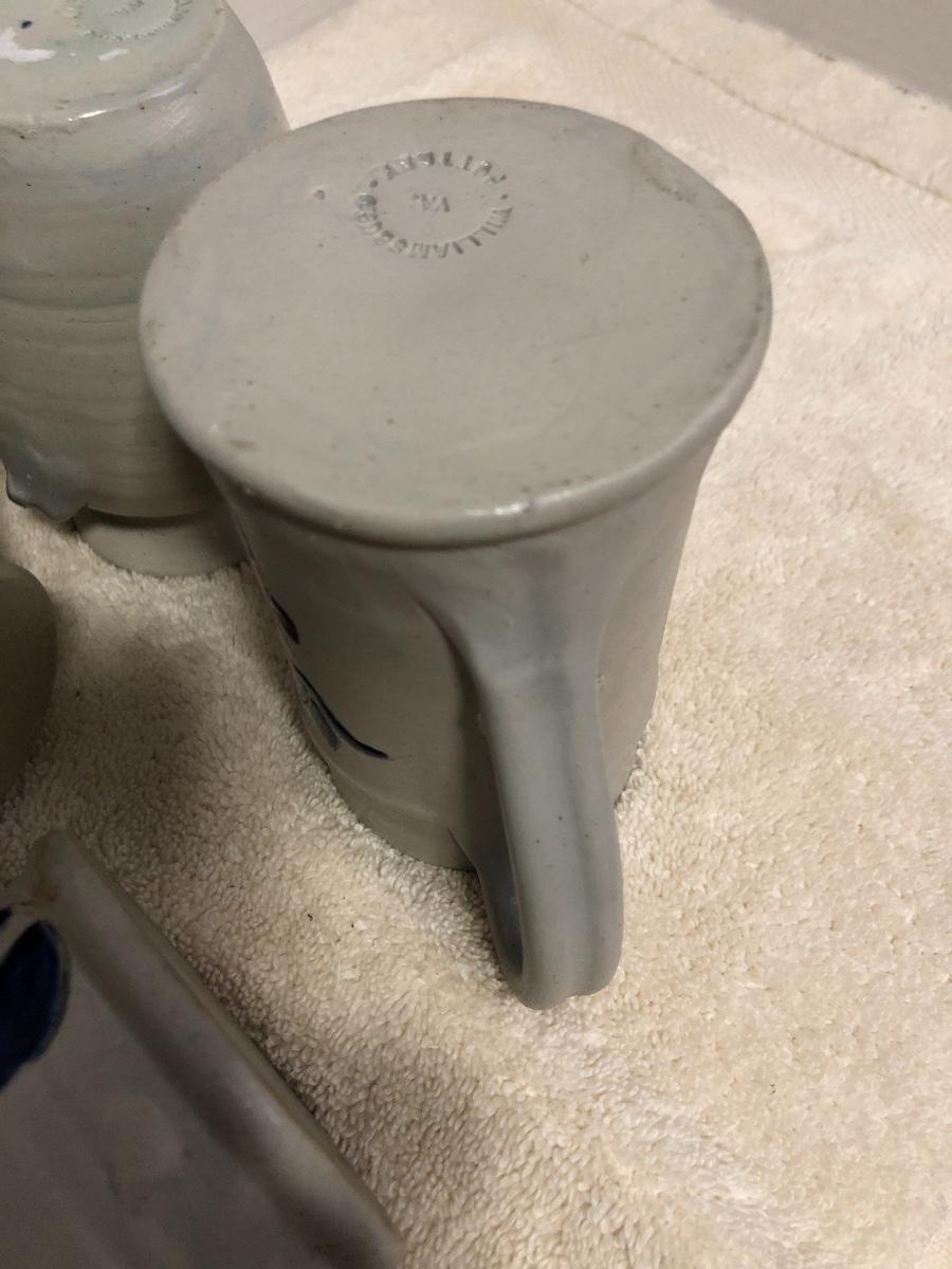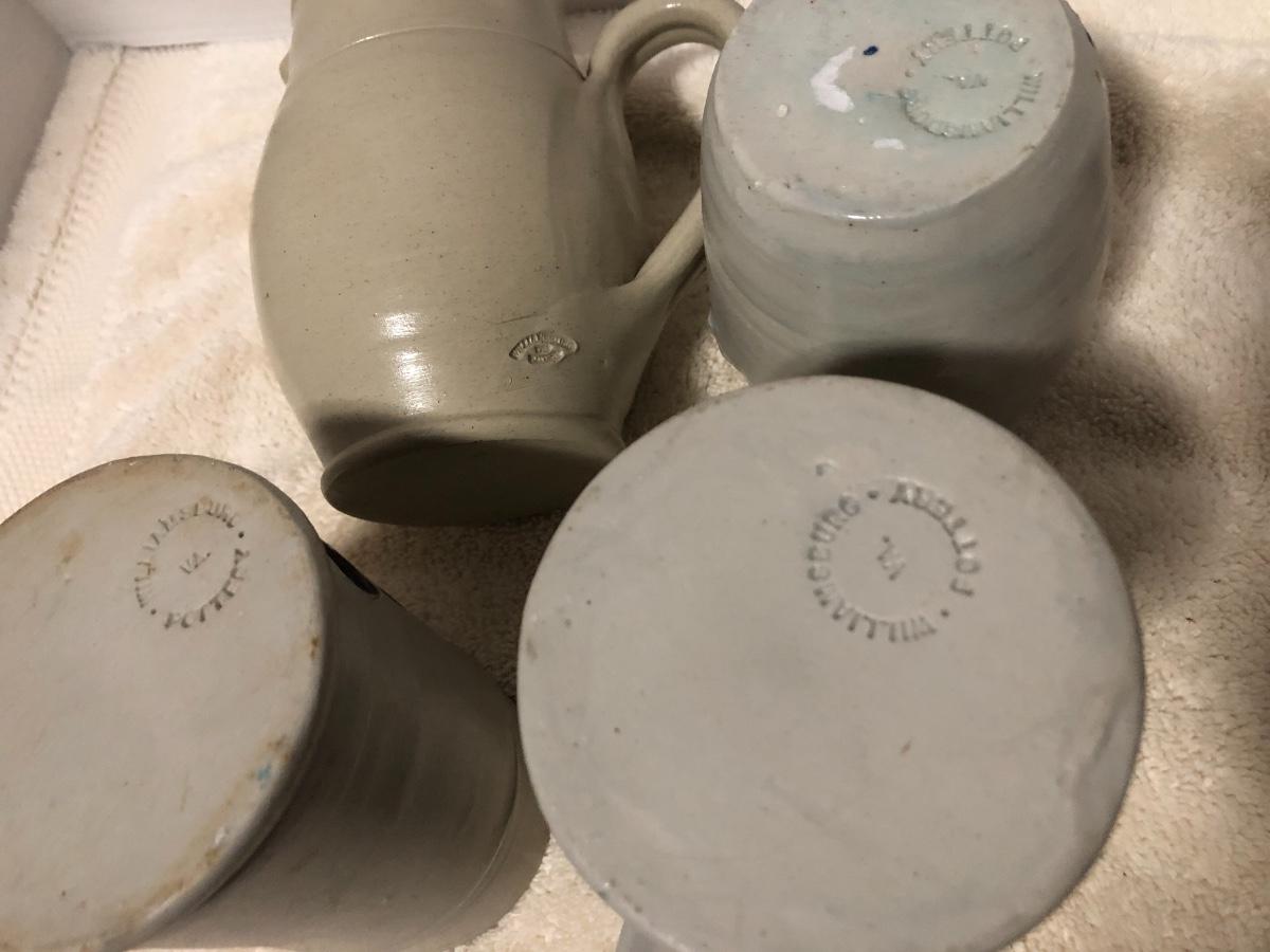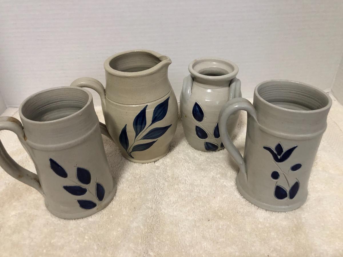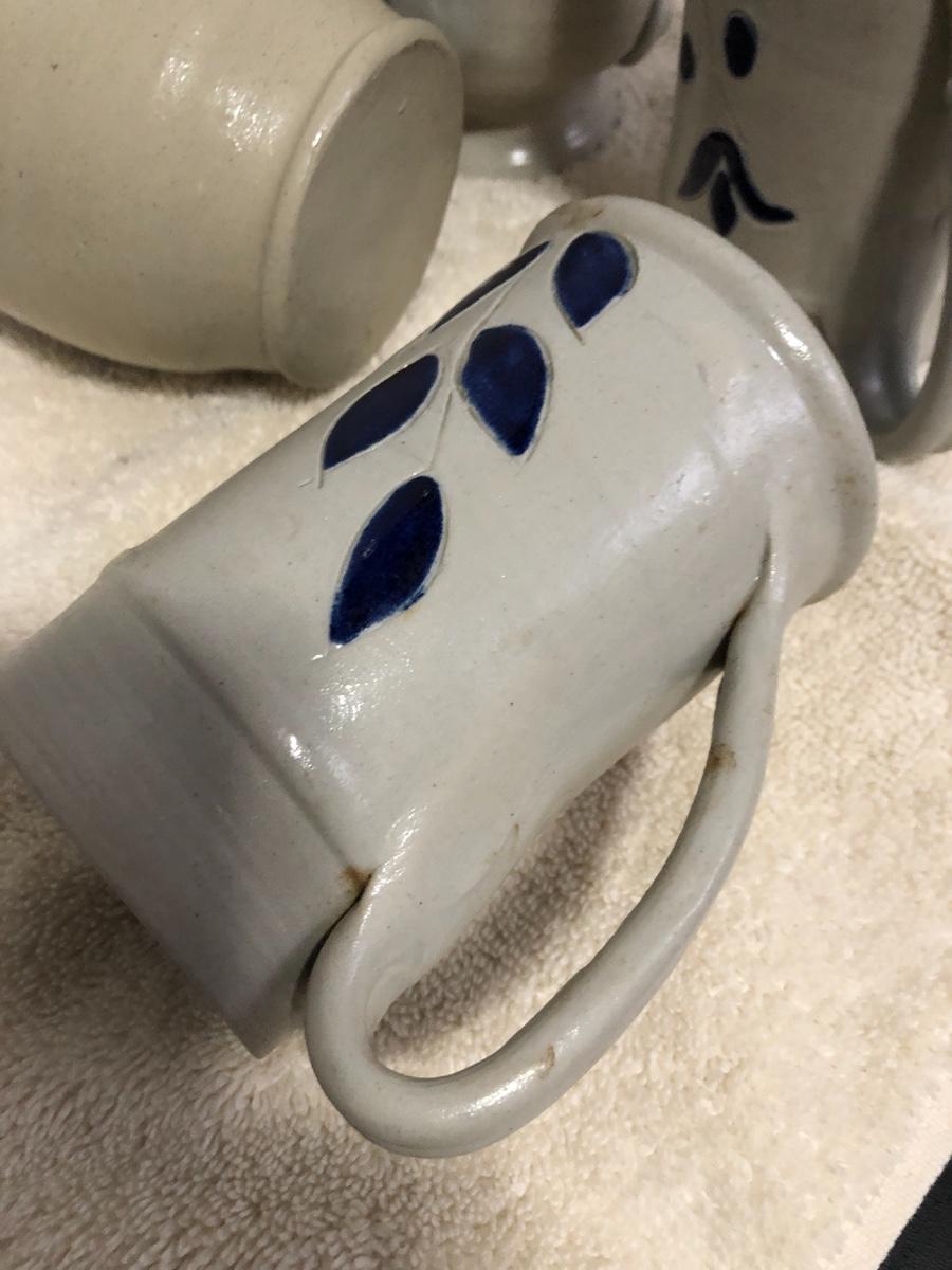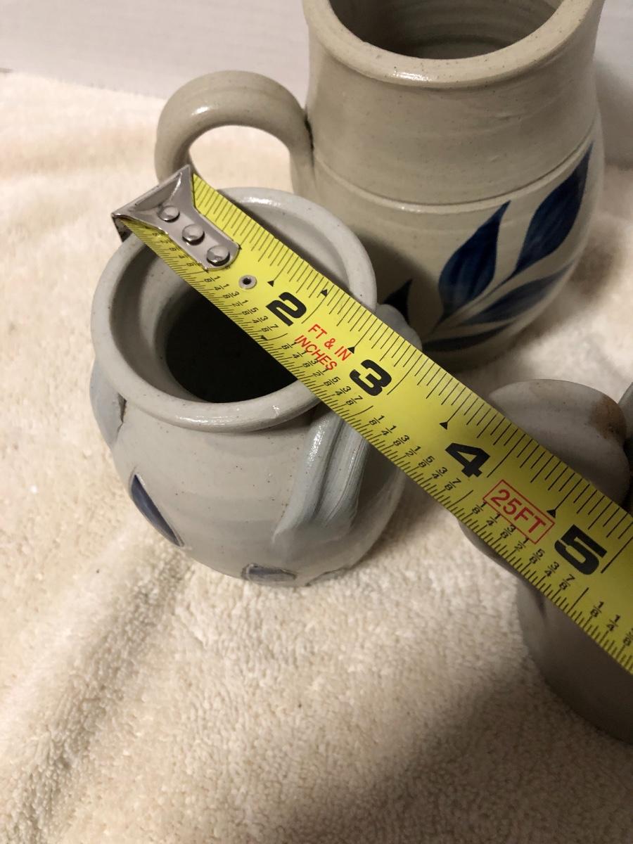 All items are sold as is, as found in the estate. Please see all photos for content, measurements and condition. Two mugs, pitcher and vase. Very good condition.