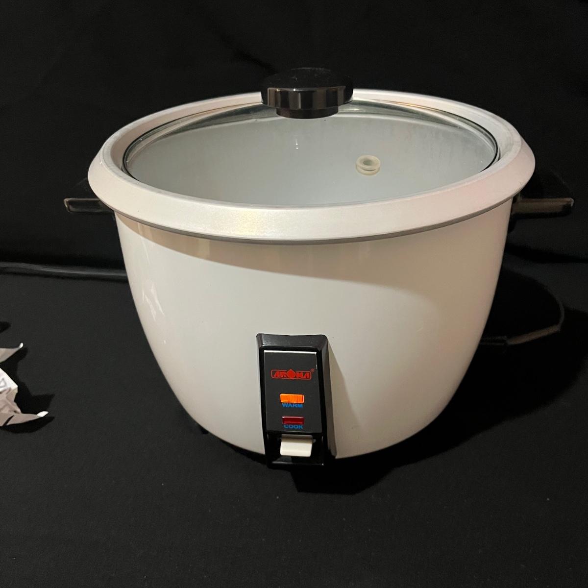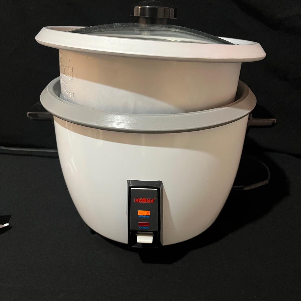 Williams-Sonoma Automatic Bread Machine. This machine gives the option to make the following: whole wheat, French, sweet breads, and pizza dough. It features crust control and even allows the user to program custom bake times and temperatures. This machine does show signs of use and powers on. Please see photos for more details. Bread machine measures, 15.5”L x 10”W x 13”H. The model number is WS0598. Also includes an Aroma rice cooker that measures 10”D x 9”H and powered on when plugged in.