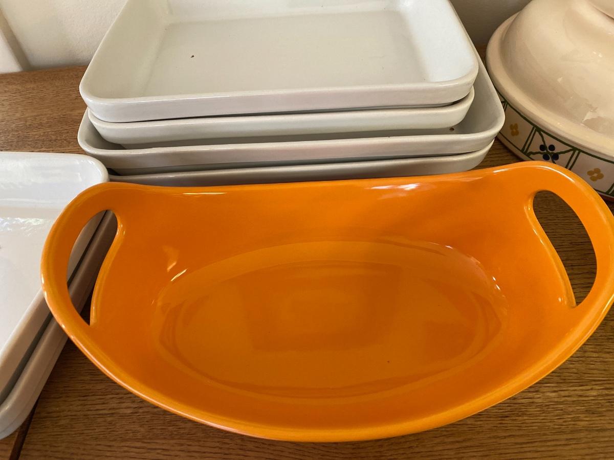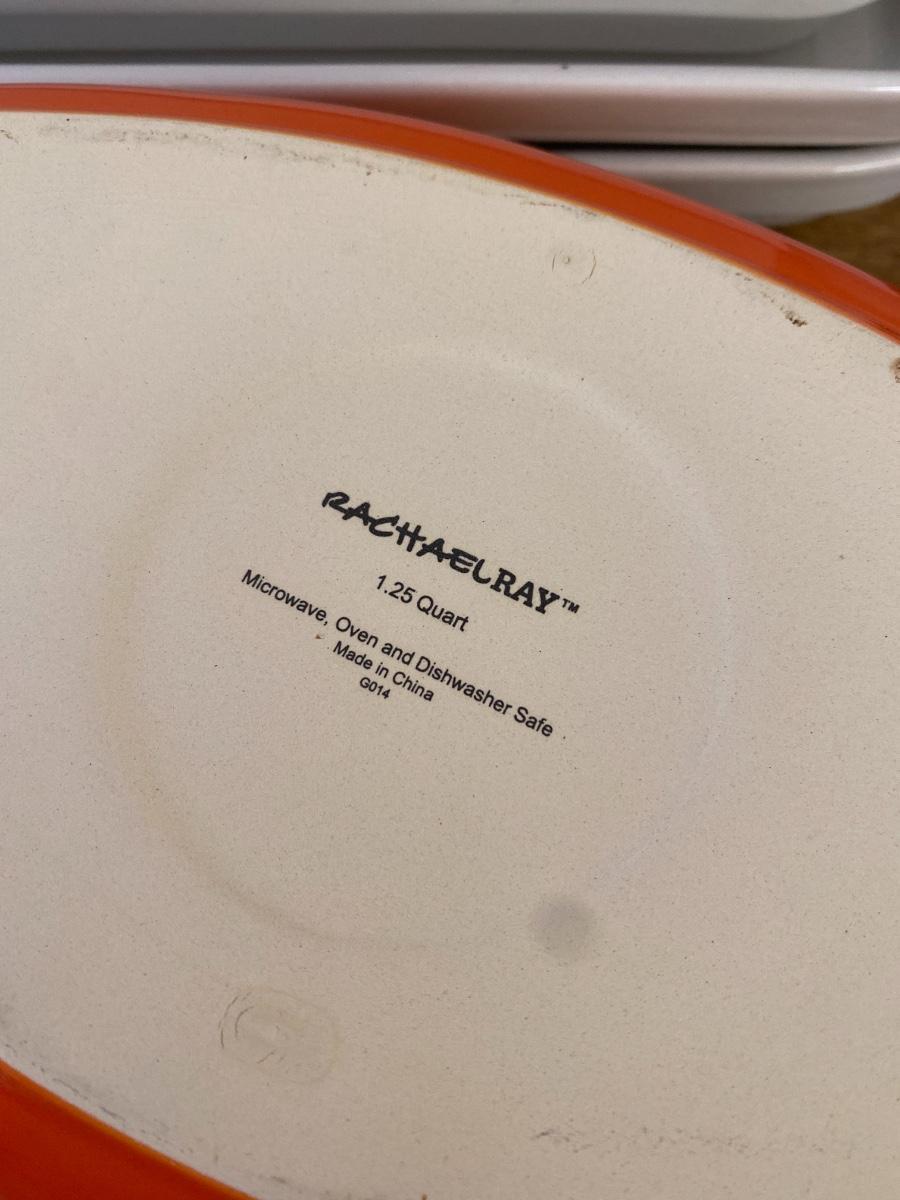 Includes an orange Rachael Ray 1.25 quart baking dish. All items as is and in box in guest room. . So white dishes may have a few chips in some spots.