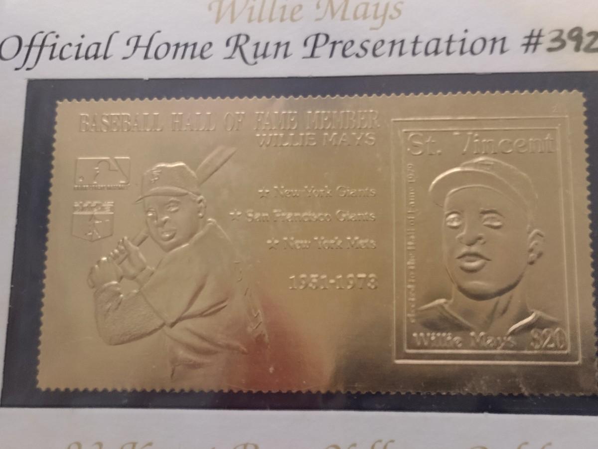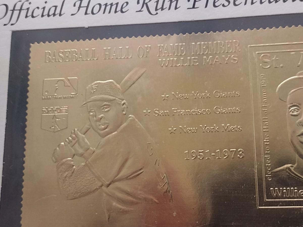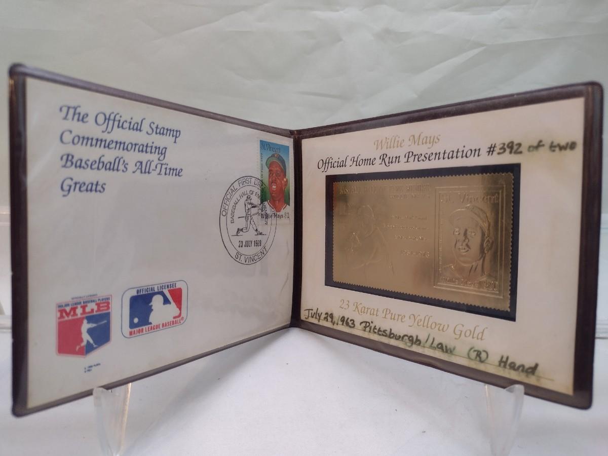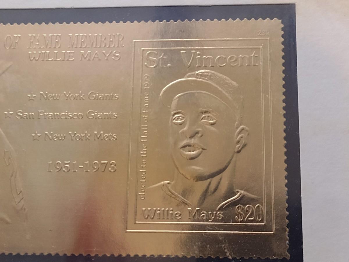 Willie Mays Hall of Fame Member Baseball Legends First Day Issue and 23K Gold Stamp July 1963