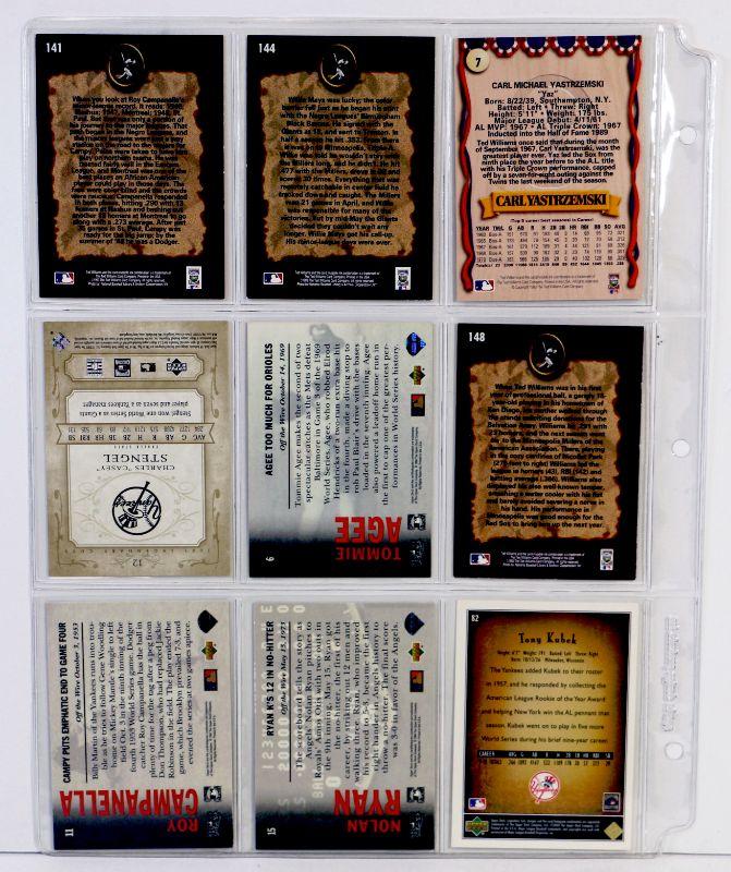 WILLIE MAYS Ted Williams Tony Kubek NOLAN RYAN Carl Yastrzemski BASEBALL CARDS SET - MINT