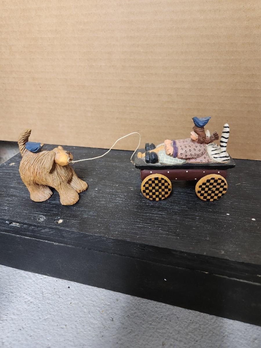 Dog pulling wagon figurine. No box