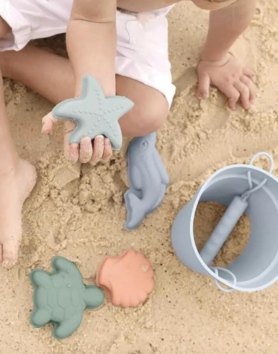 Willow + Sim Sharkskin Blue Silicone Kids Beach or Garden Bath Toy Set