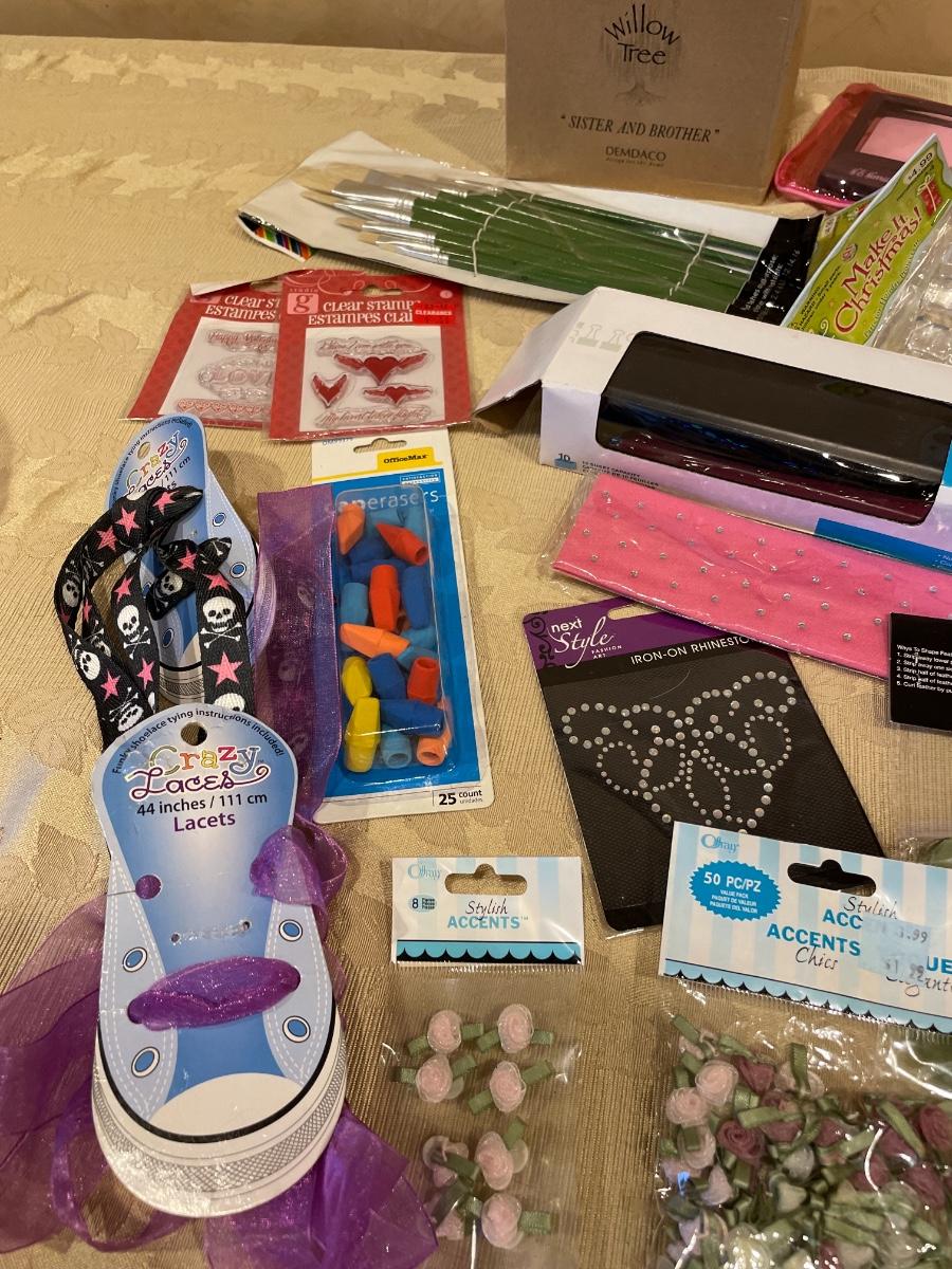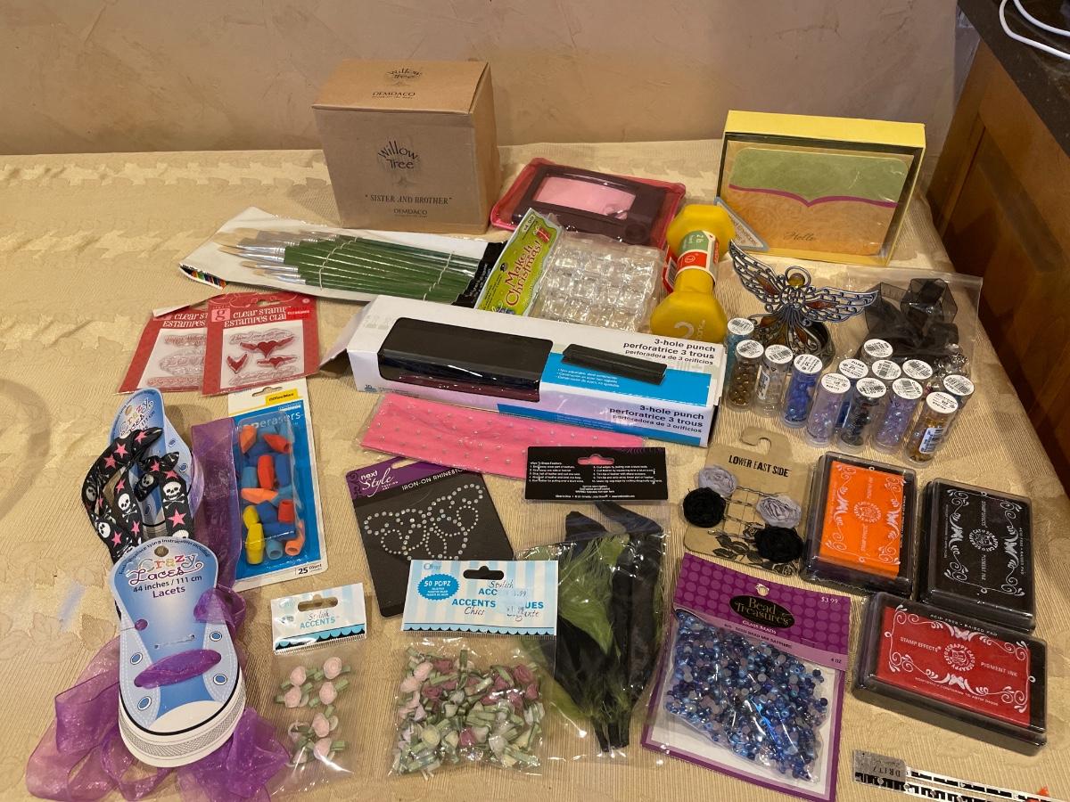 Includes brushes, notecards, ice cubes, 2 pound weight, three hole punch, beads