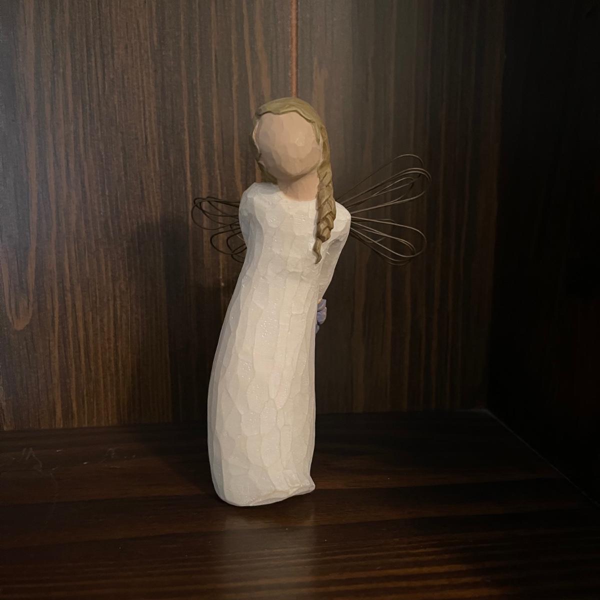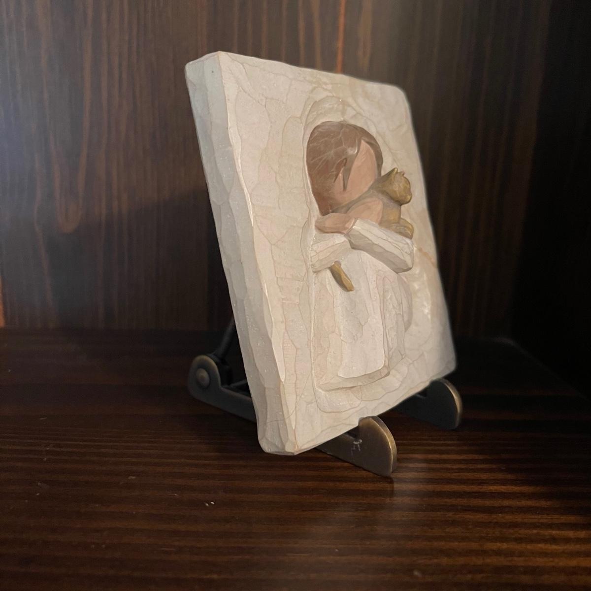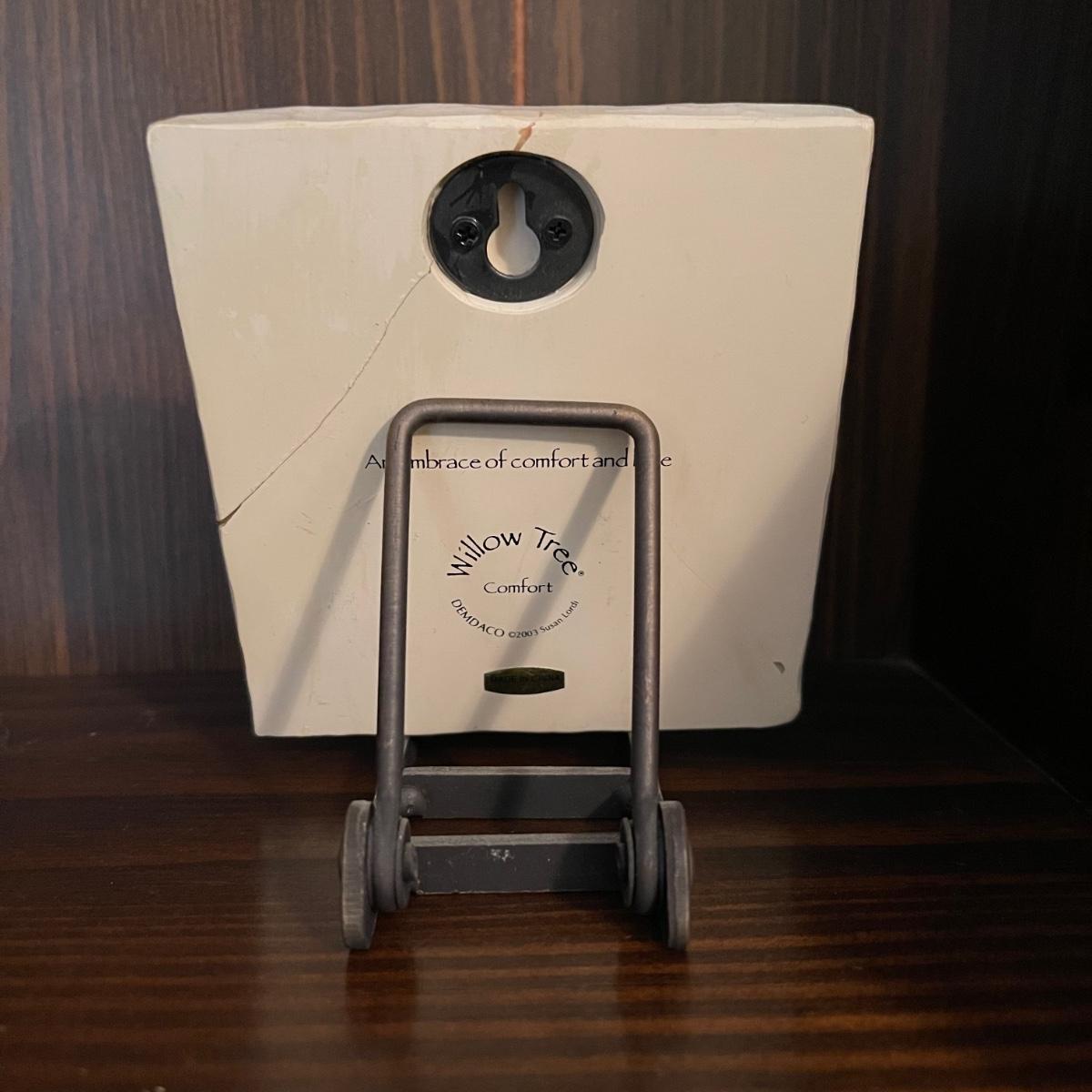 This lot includes three Willow Tree angels, a prayer plaque and a wall plaque. Three (two are alike) Willow Tree angels are named “Thank you” and “Angel of Friendship.” The wall plaque is titled “An Embrace of Comfort and Love” and measures (4” x 4”) . It does have a crack but seems securely attached. The ceramic plaque says “In Everything give Thanks” and was made by Sky Pottery in Burnsville, NC. and measures 8.5” x 6”.