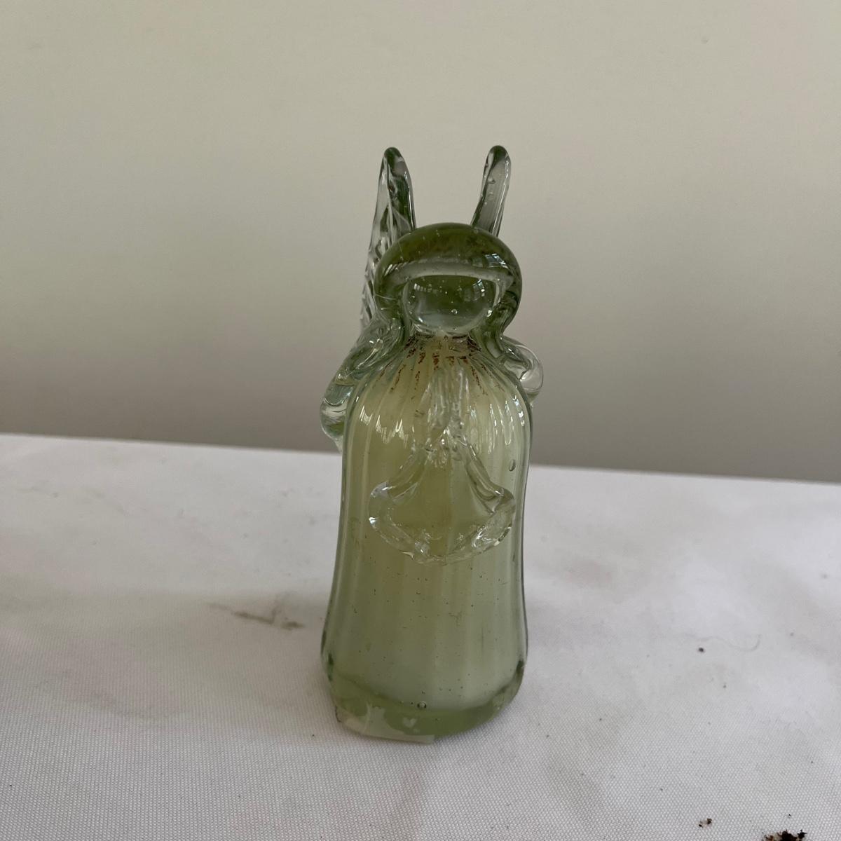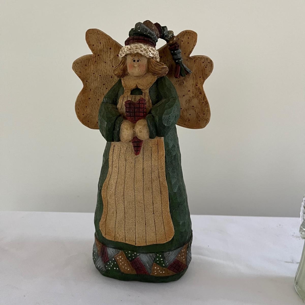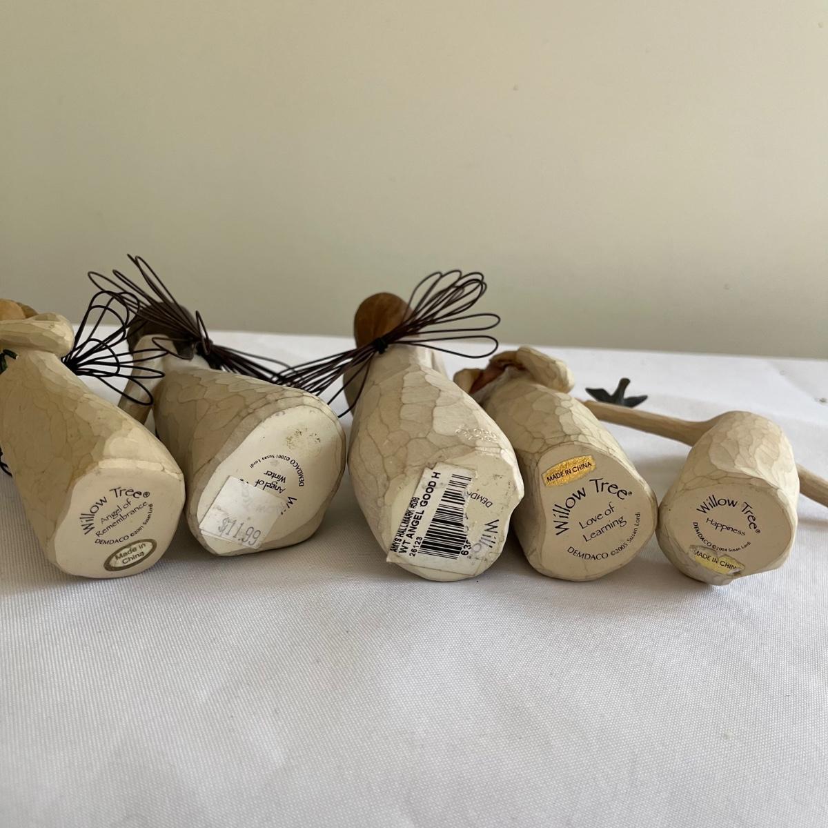 This lot contains five Willow Tree figurines, a glass angel figurine, ceramic and resin angel figurines and more. Largest angel figurine measures 3.5” x 5.6” x 10”.