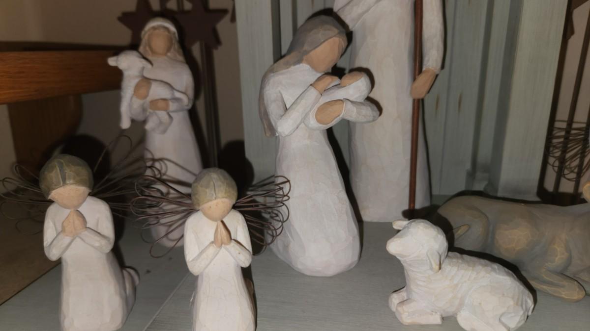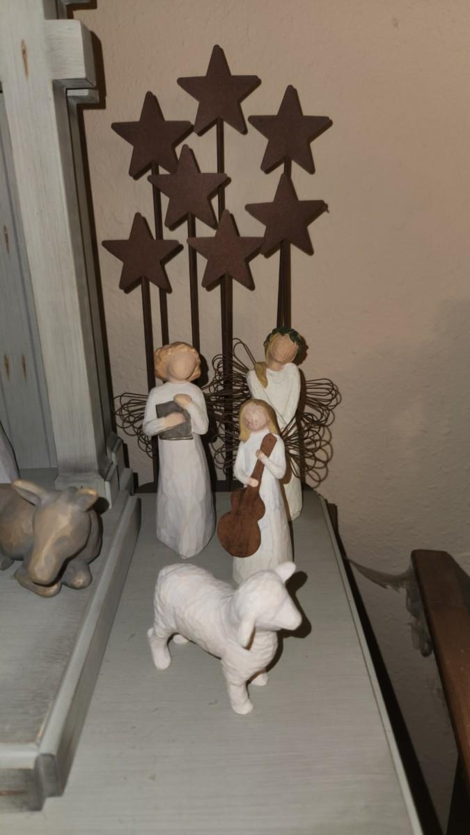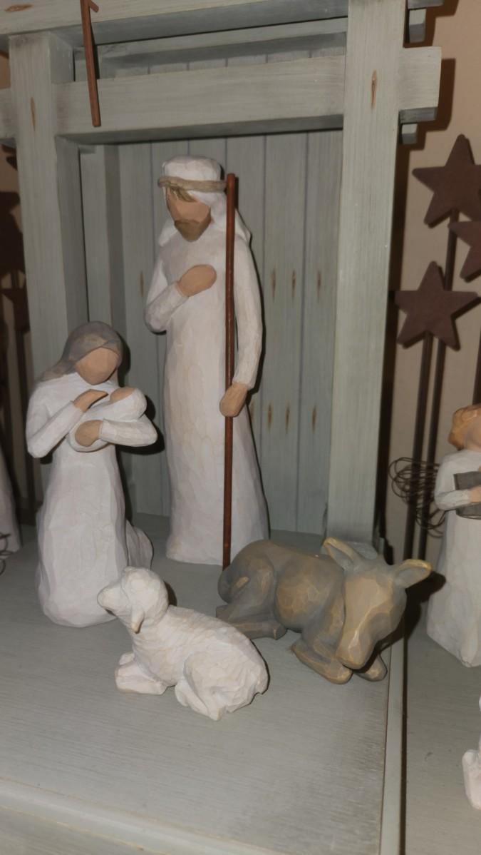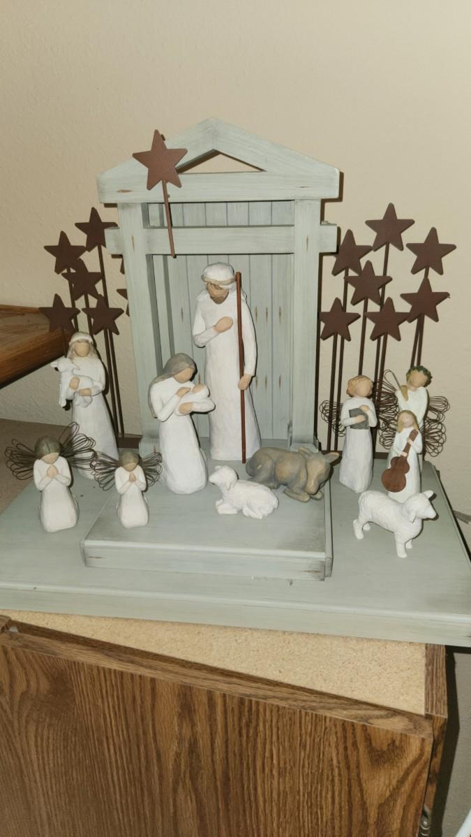 Comes with 11 Willow tree figures and the display. Plus one wicker basket