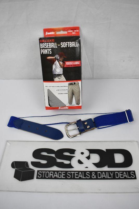 Wilson 1" Elastic Youth Baseball Belt, Royal Blue & Franklin Sports Youth Baseball Pants, Grey - New