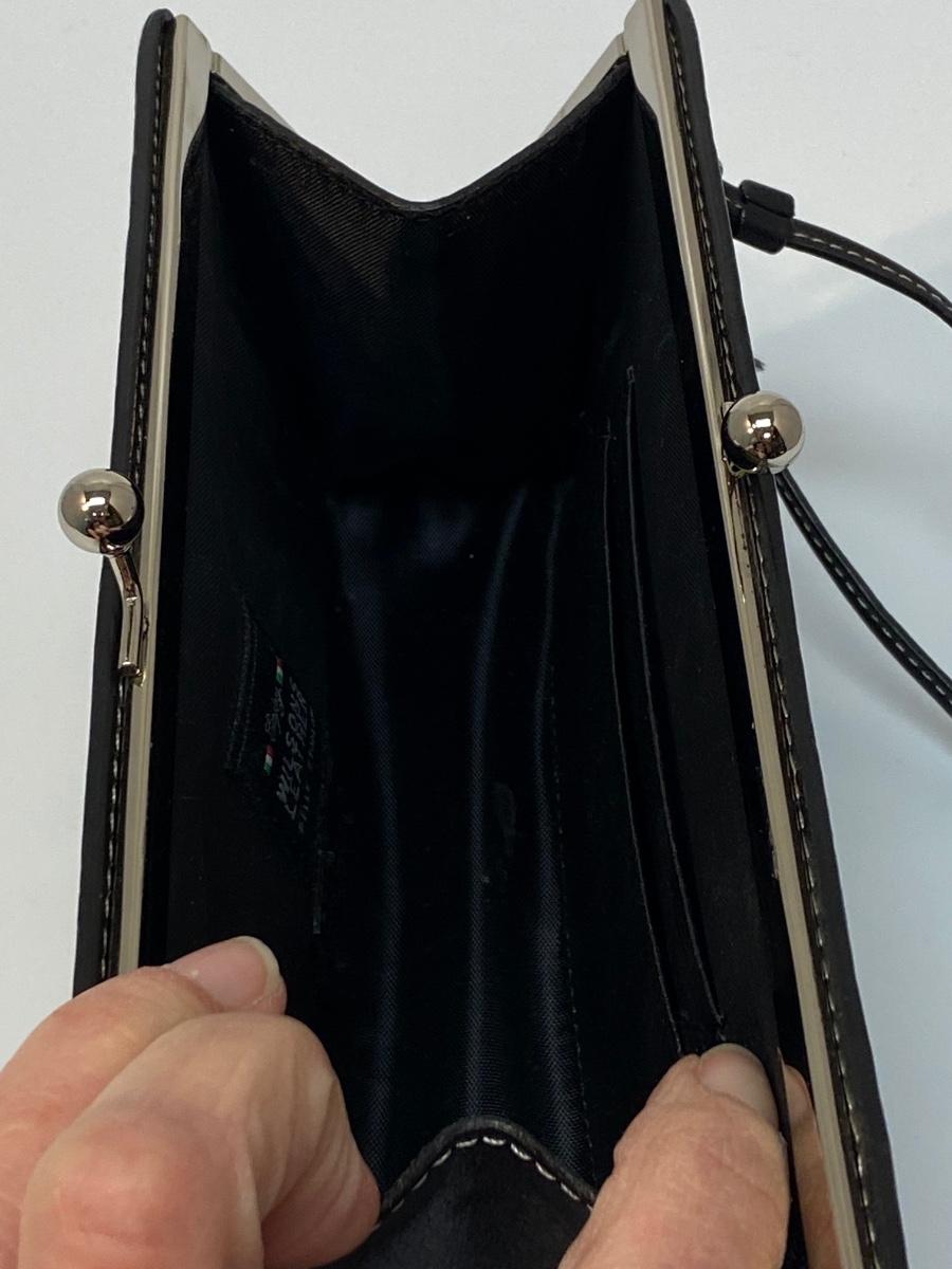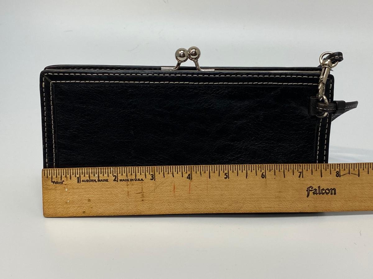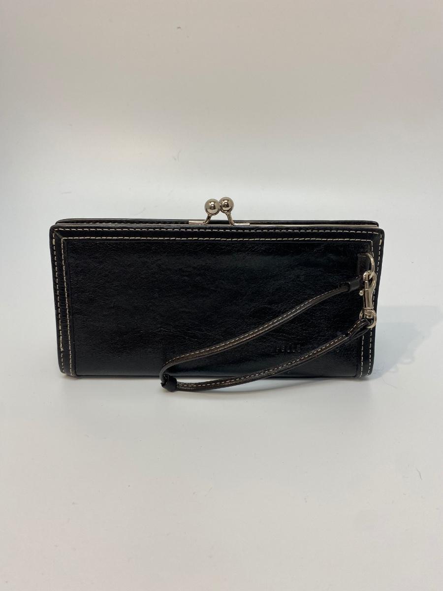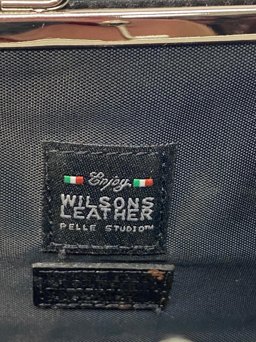 Small black clutch from Wilson's Leather. Genuine leather. Removeable wrist strap. Good condition. About 7.5" size.