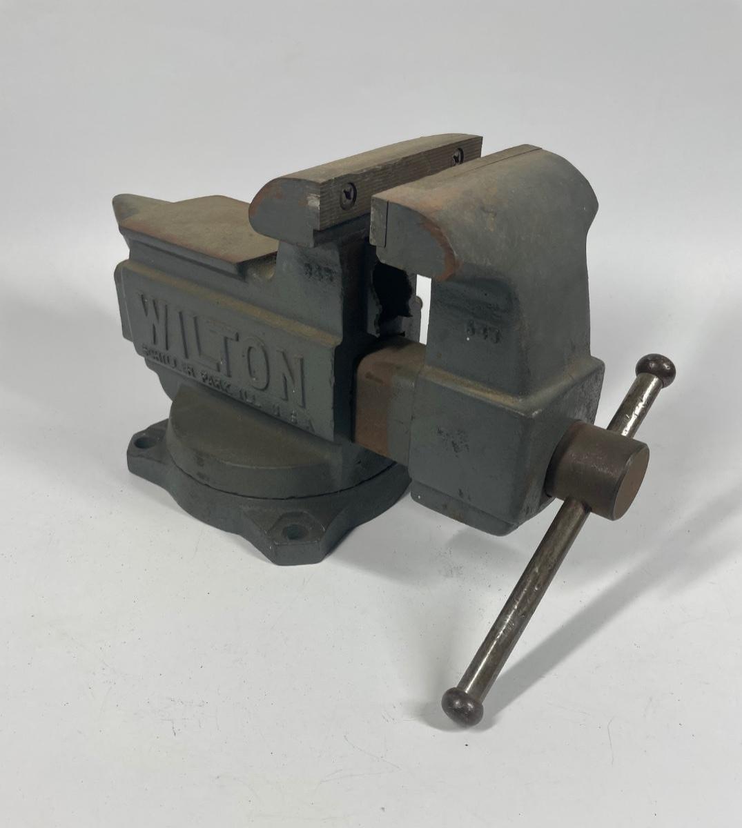Wilton #645 Swivel Bench Anvil Vise 5" Jaw. Some surface corrosion, but otherwise excellent condition. No visible damage and works smoothly.