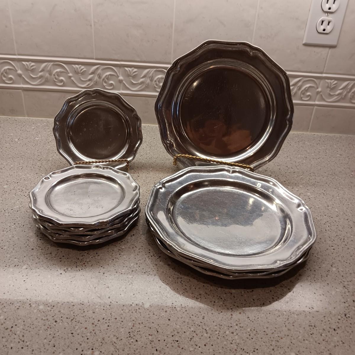 WILTON PEWTER 4 DINNER PLATES AND 6 SIDE PLATES