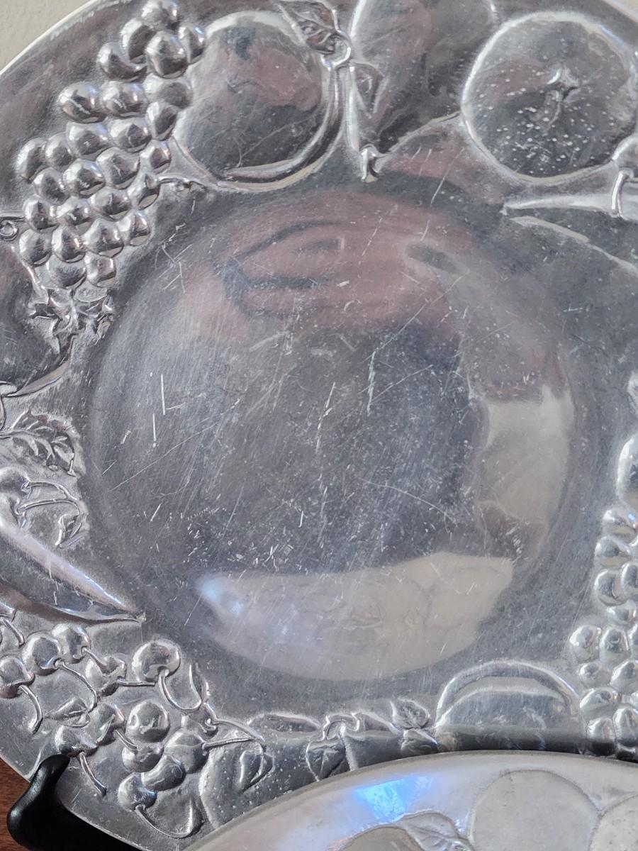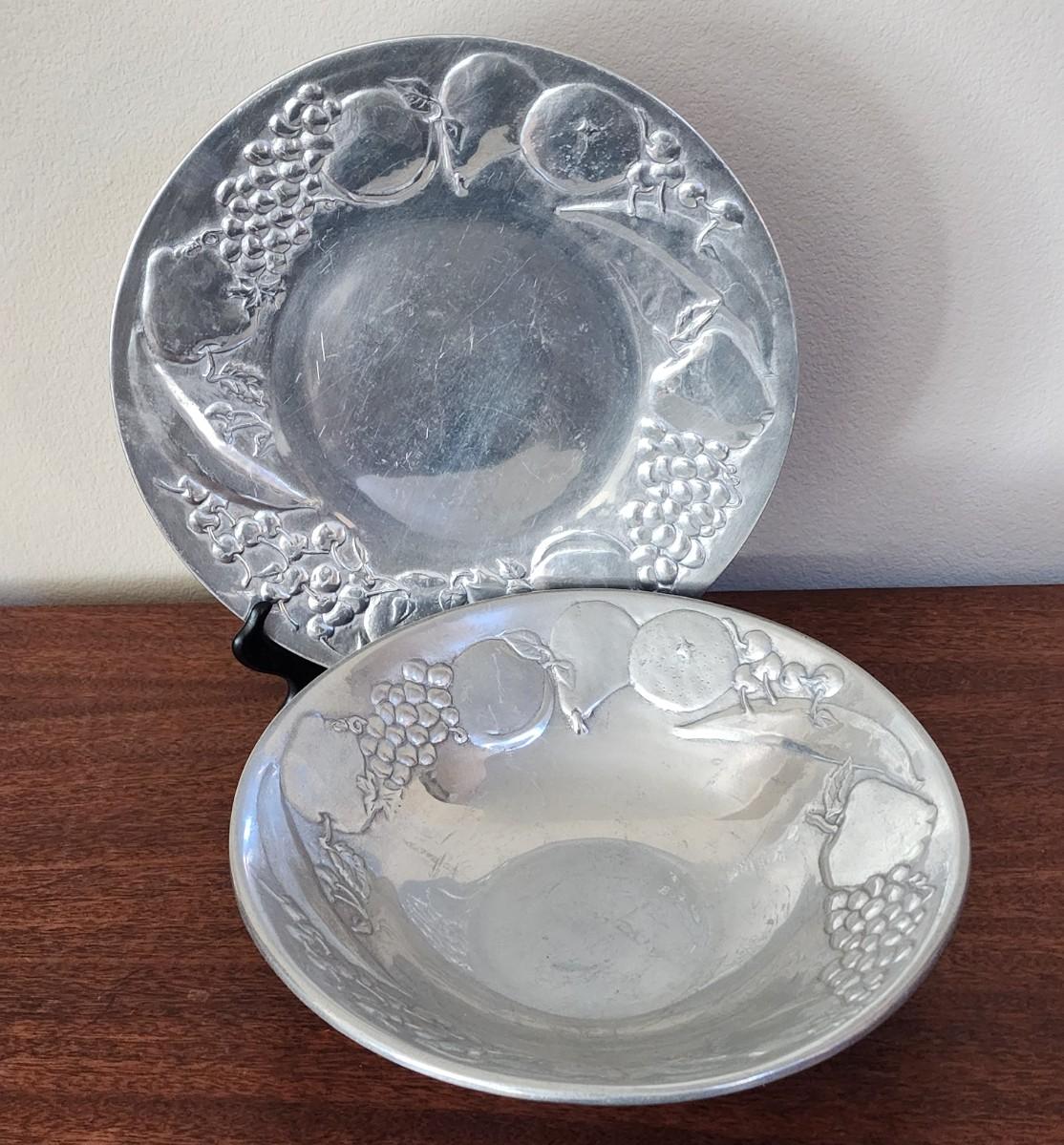 Wilton Pewter Large Bowl and Round Platter with Fruit Themed Rim
