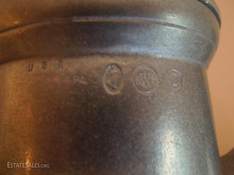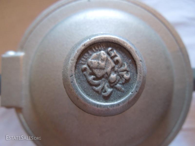 10" H x *" W. Ornate handle. Hallmarked. Not antique, but vintage. Not dented (light refraction in photo). Top of lid has crest as shown in 3rd photo.