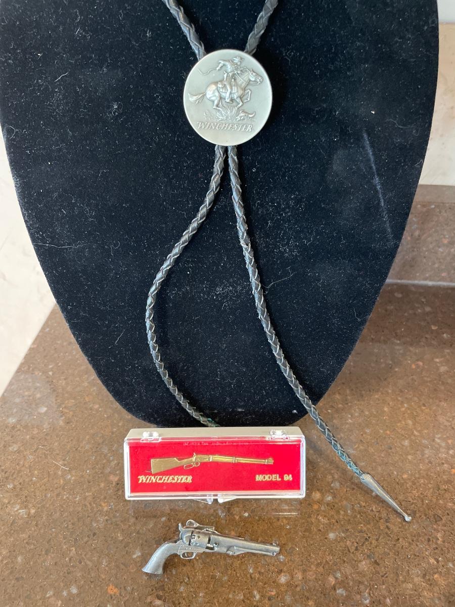 Winchester bolo tie and pins