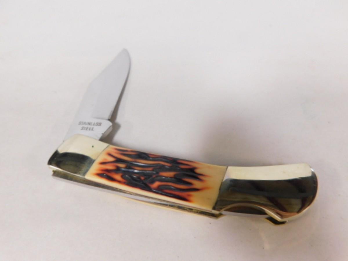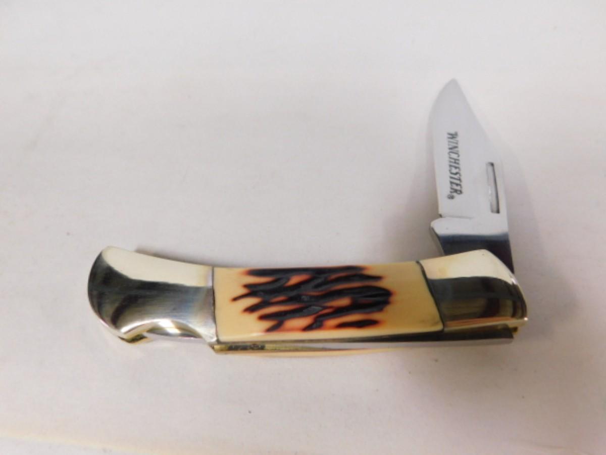 Winchester Stag Handle Single Folding Blade Knife with Box