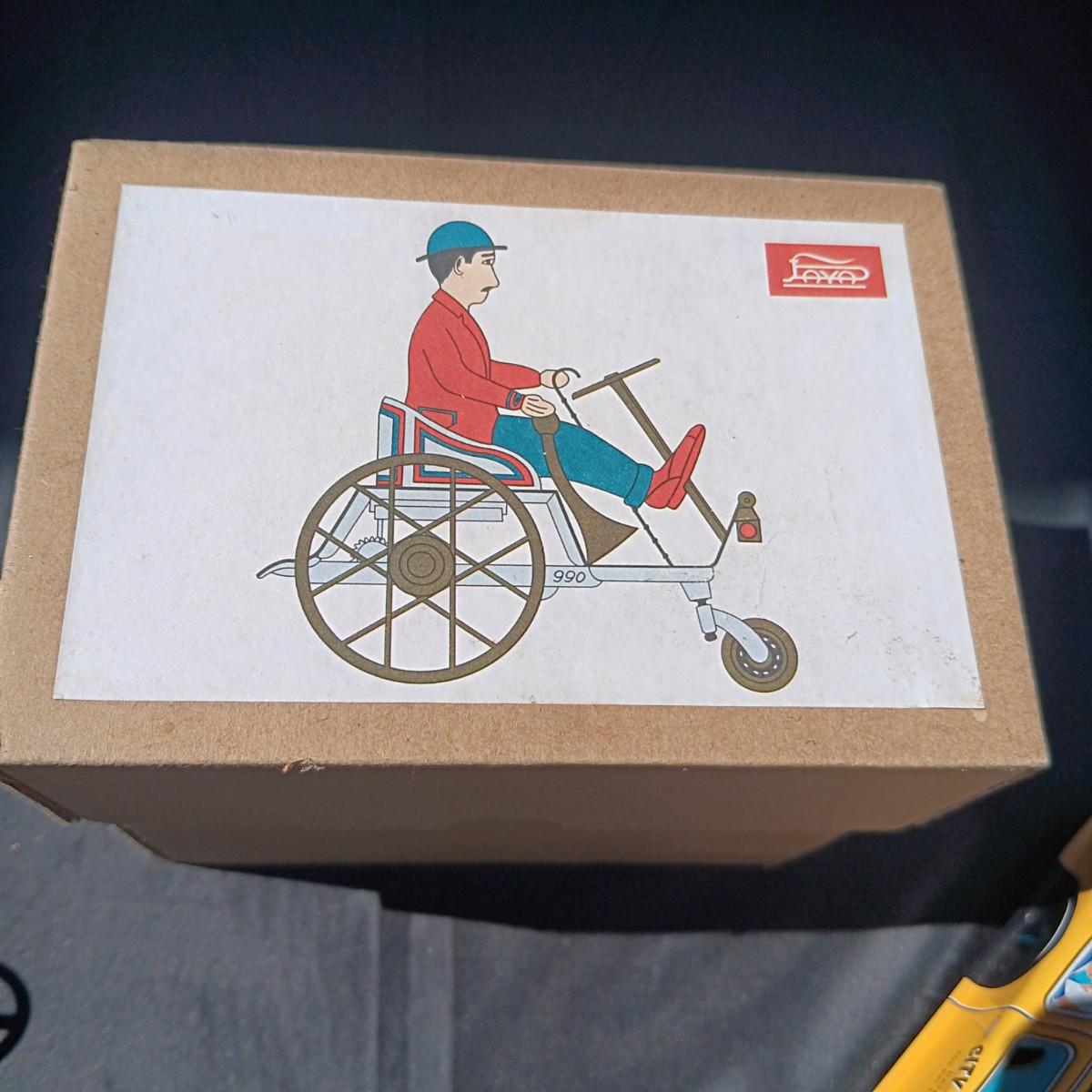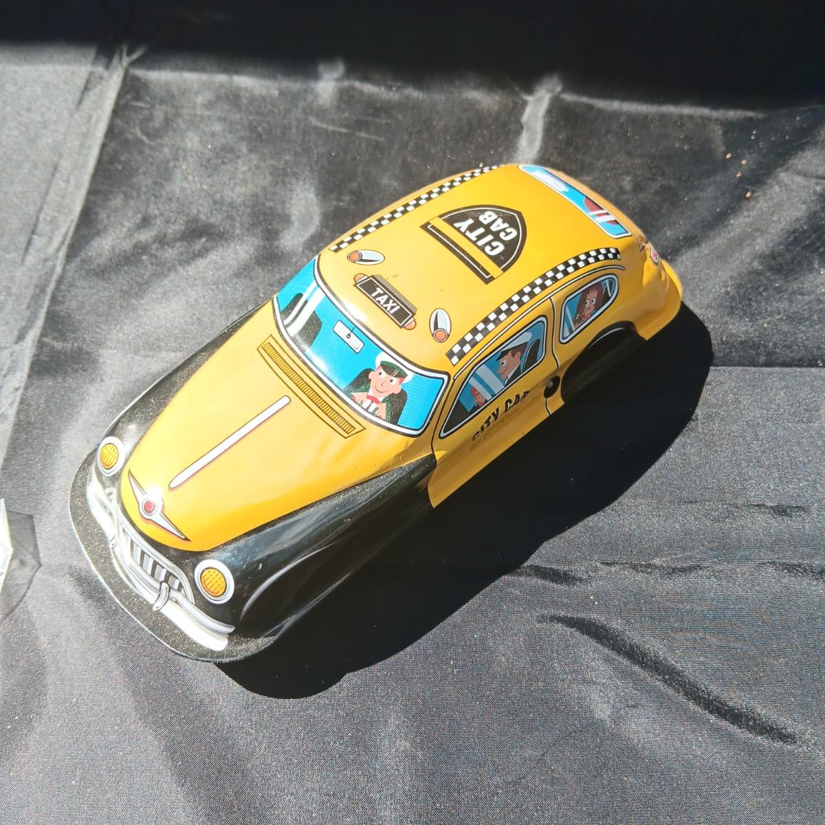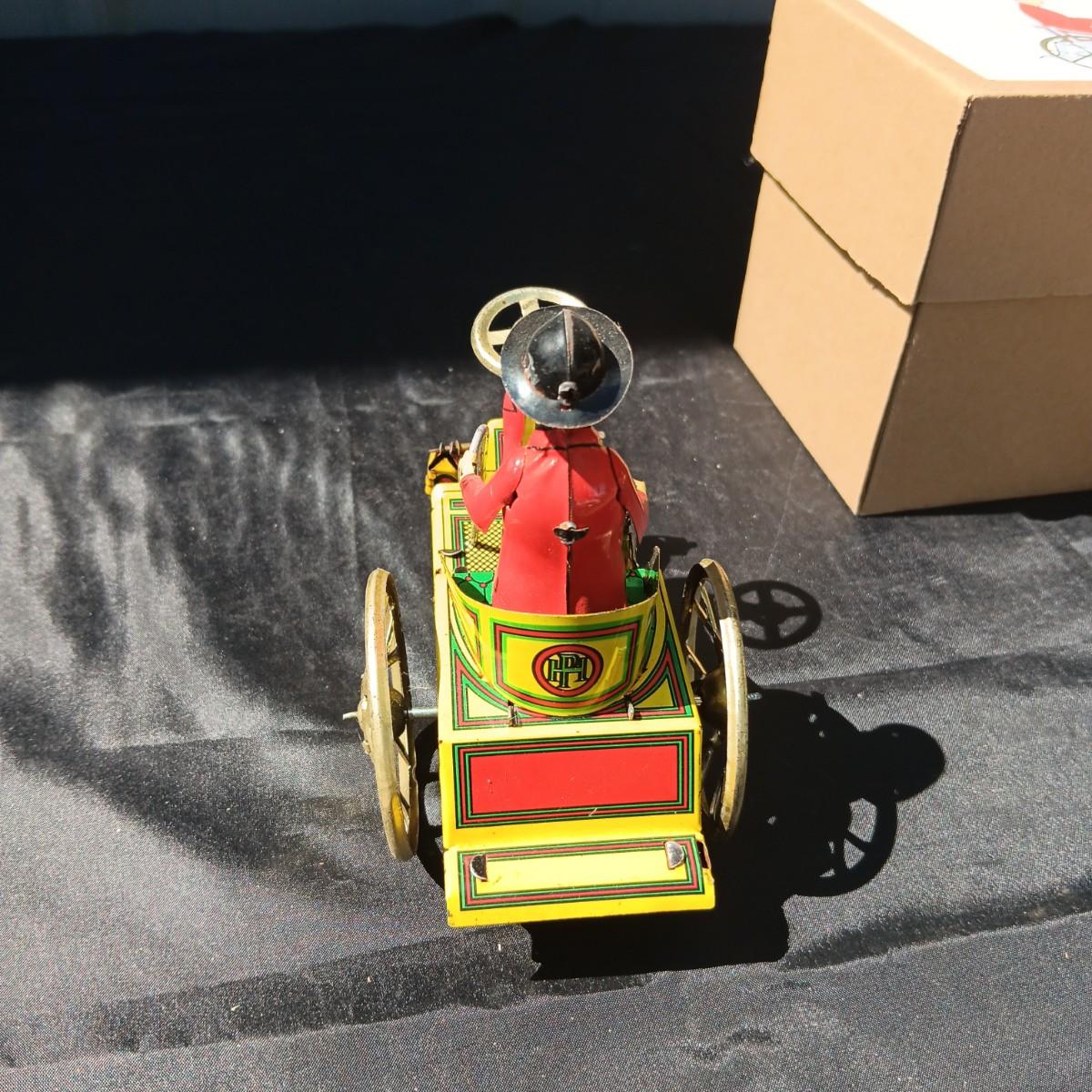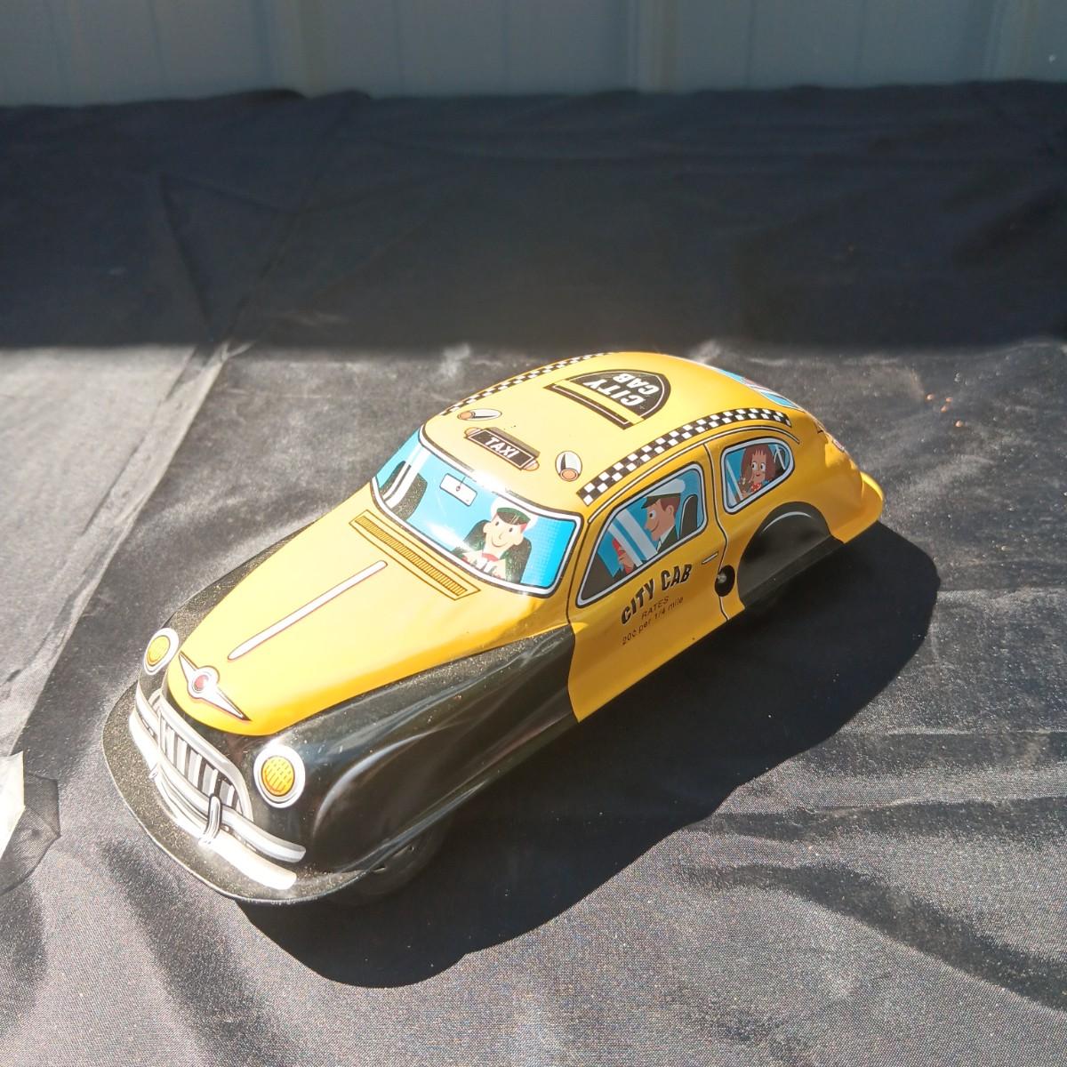 WIND UP MAN ON TRICK CART AND WIND UP TAXI CAB TOYS