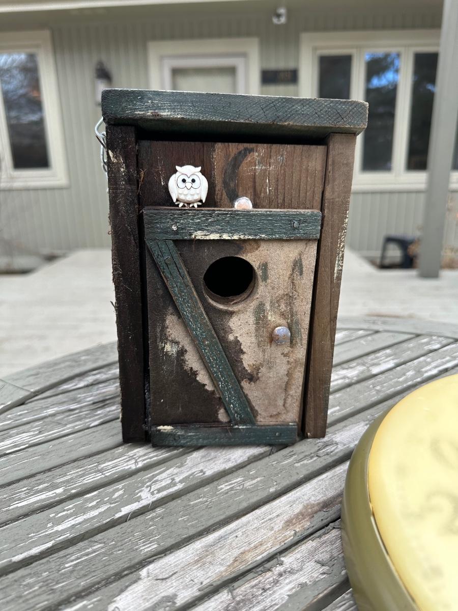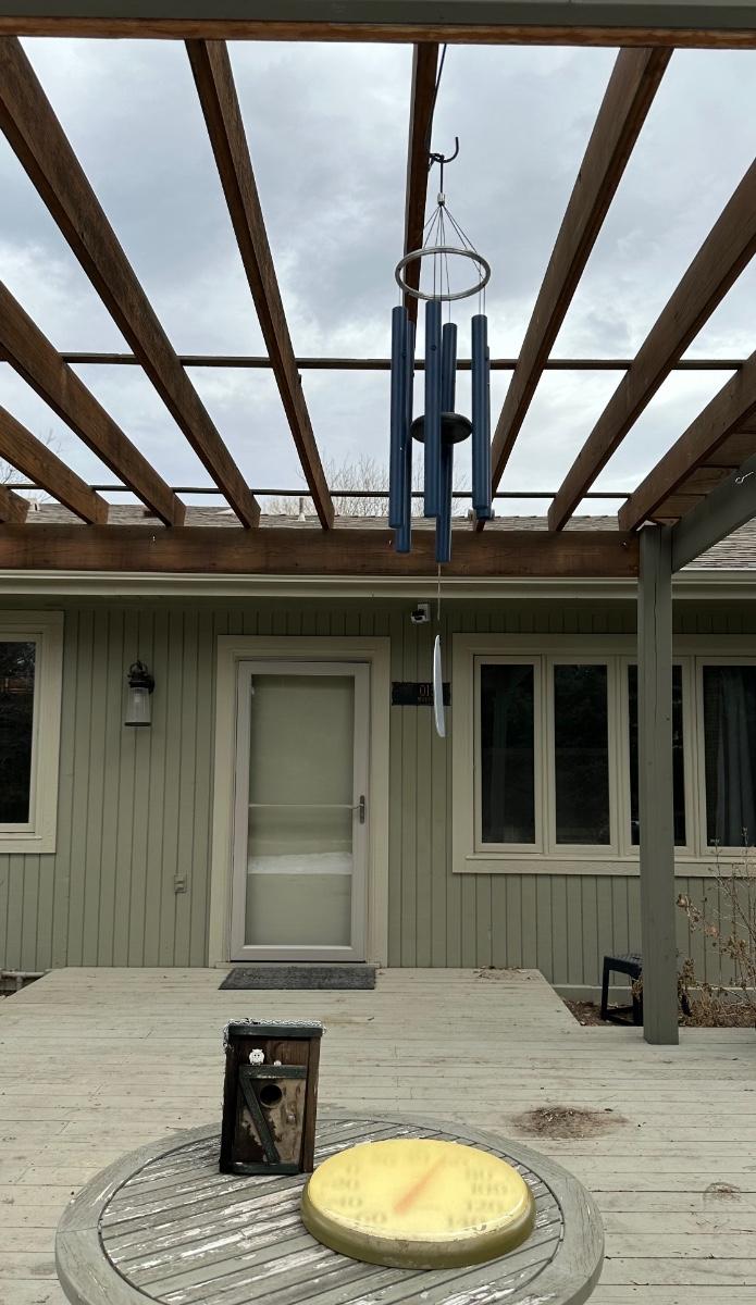 WINDCHIME, BIRDHOUSE AND THERMOMETER