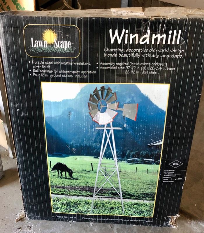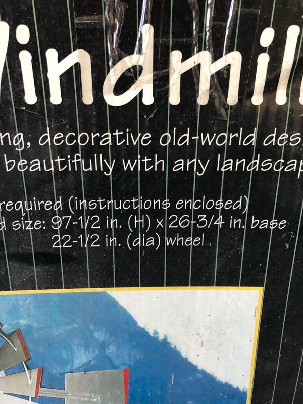 New in Box WINDMILL. Stands 97.5" tall with a wheel 22.5" wide