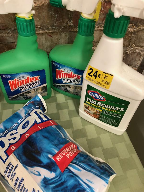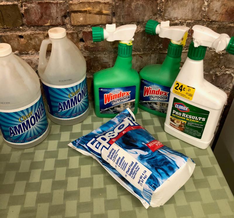 Here is a cleaning lot with unused ammonia..Windex..Clorox and Epsom Salts...