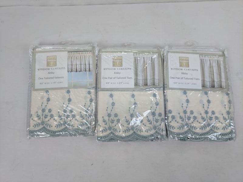 Window Curtains Abby, 60" x 24", Set of 3 - New