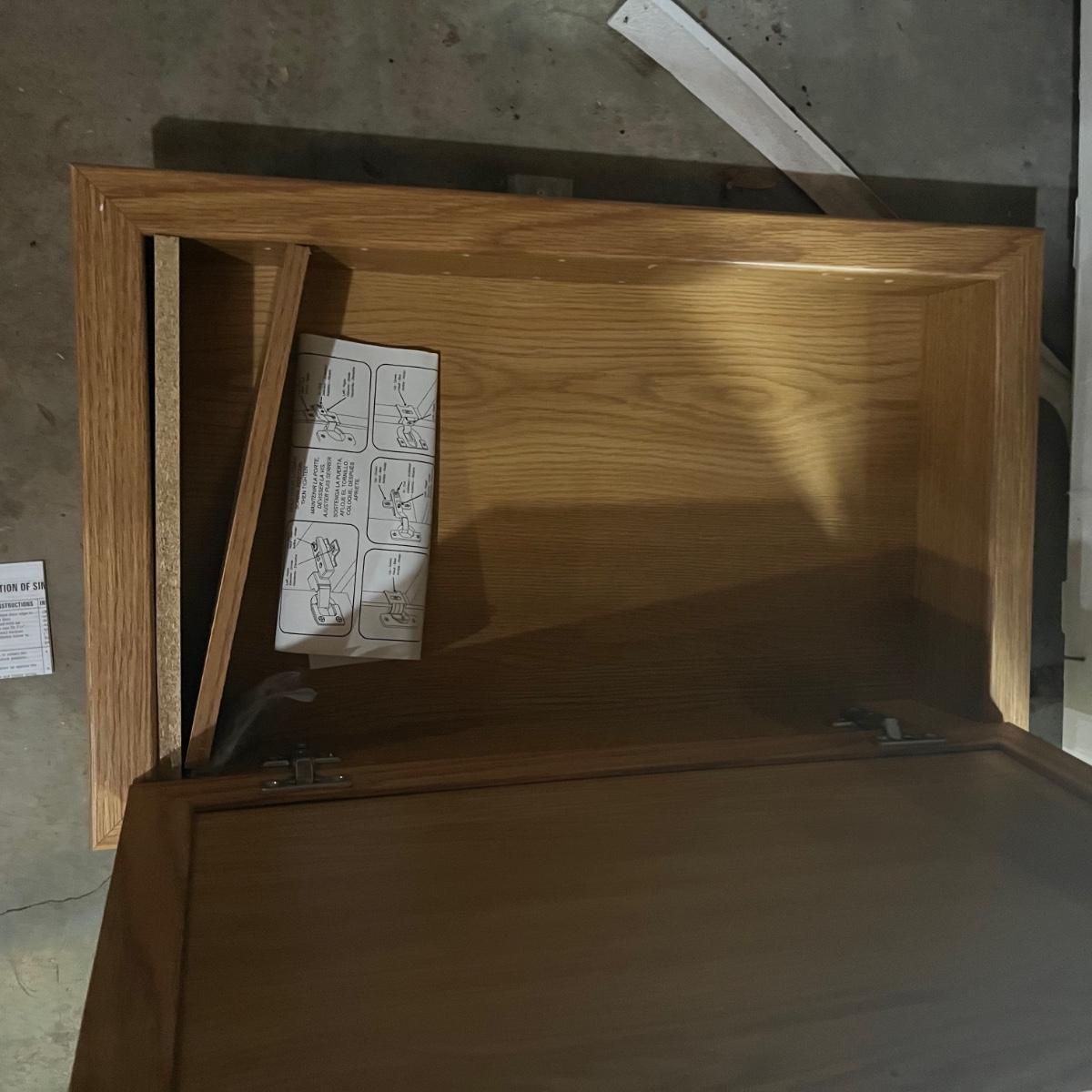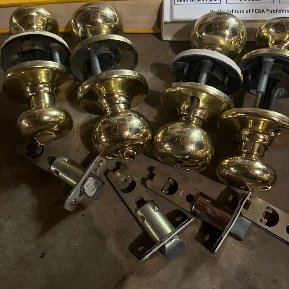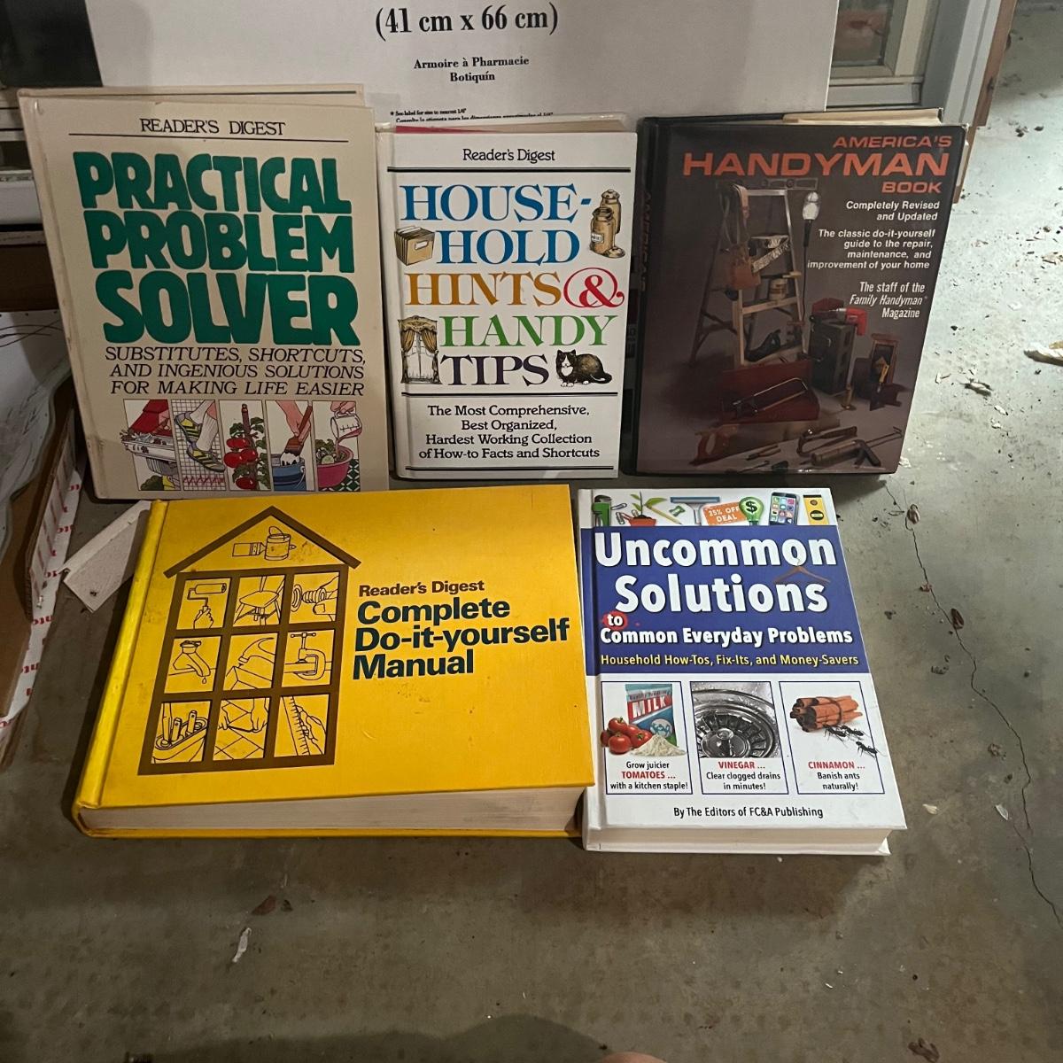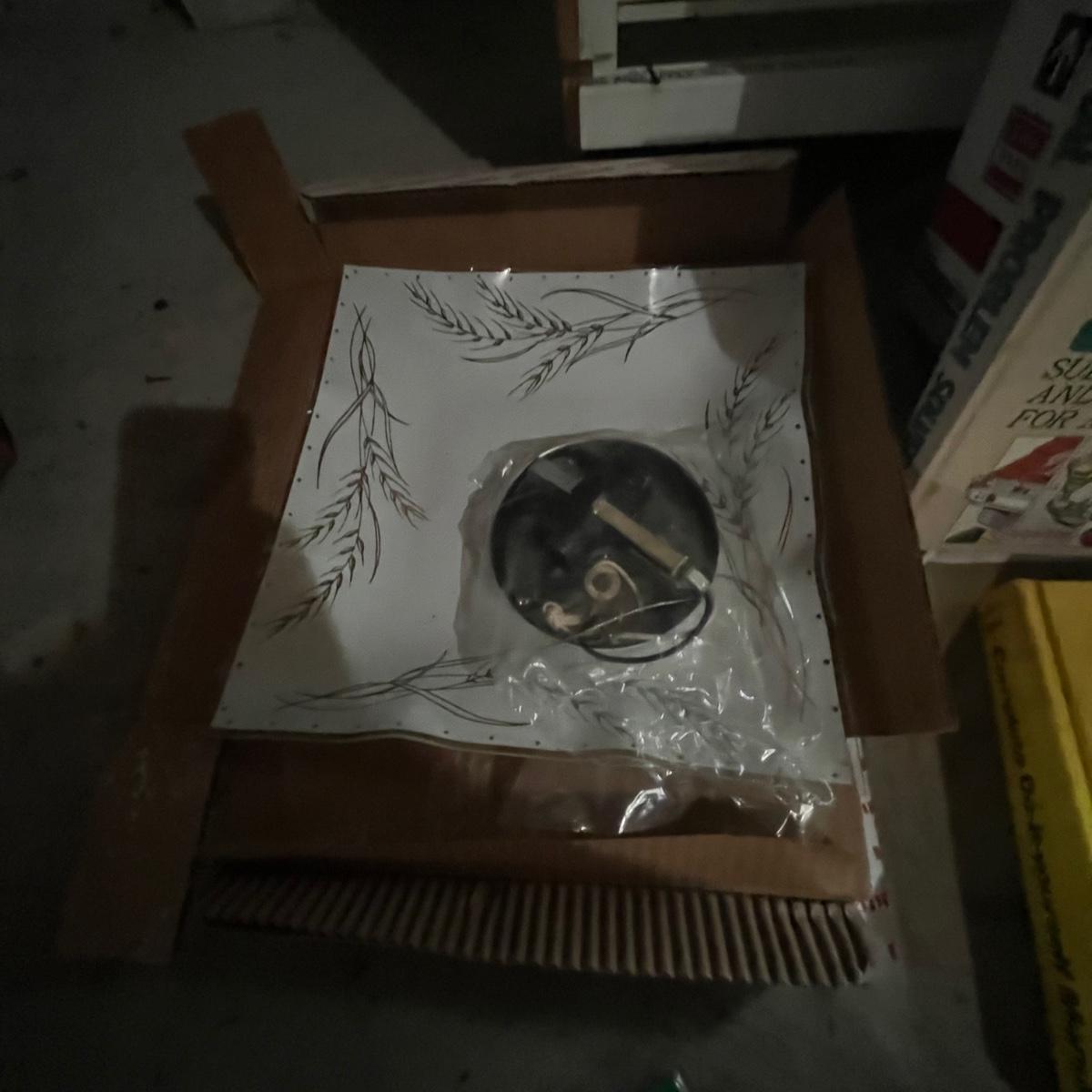 Lot includes a window with wooden frame, wooden medicine cabinet, home improvement books and an assortment of door knobs. The light fixture is a 12”square x 5.5” inch high ceiling light by lightcraft. We cannot guarantee all pieces are included with doorknobs. Window measures 32” x 52.5” x 6”.