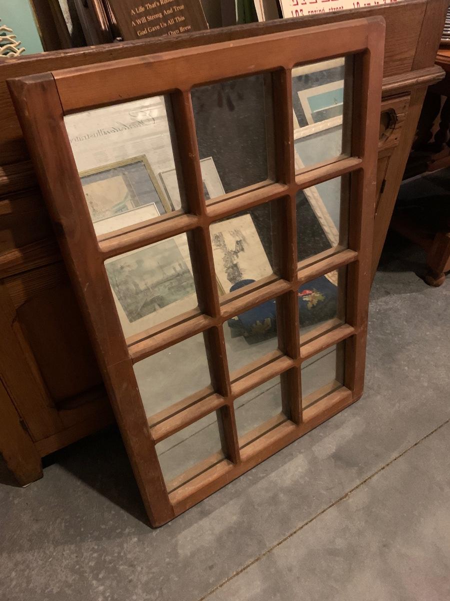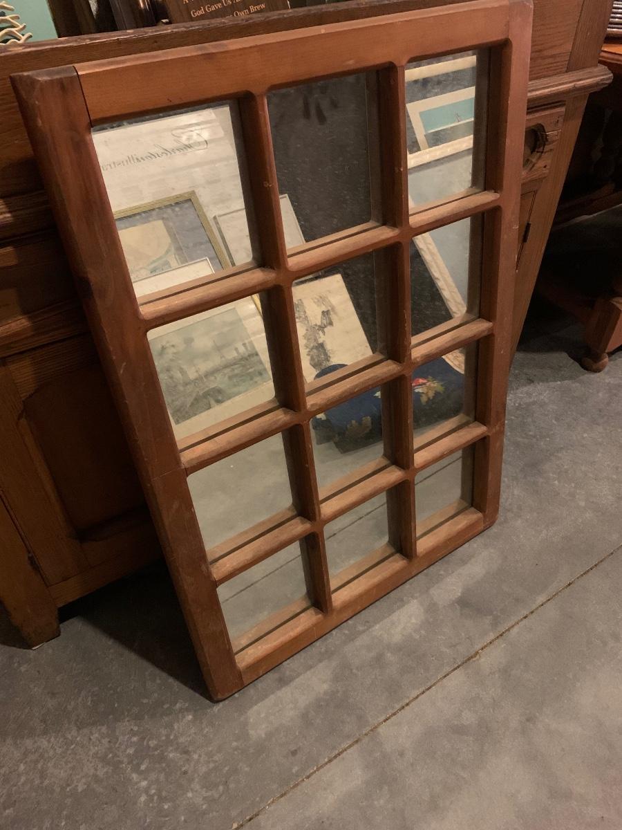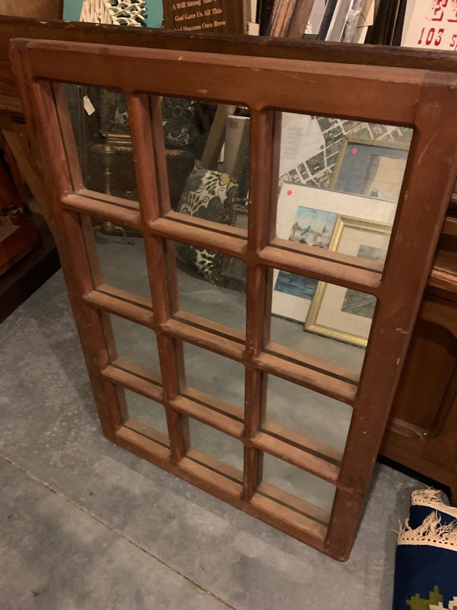 Window Mirror-wooden with dove tail 36"H 25"W 12 pane VINTAGE