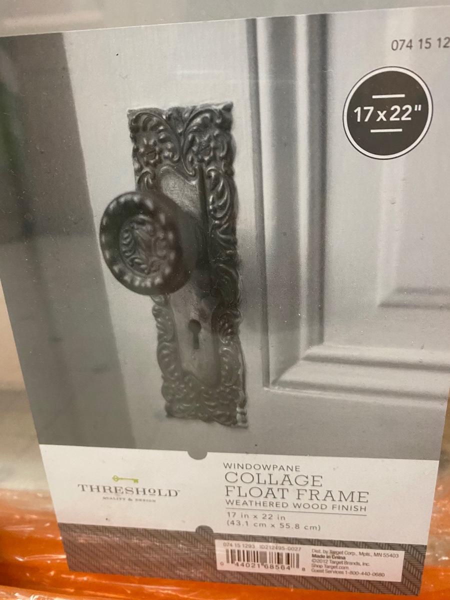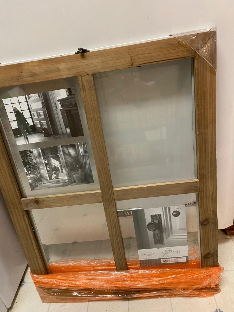 Window pane collage float frame, weathered wood finish - NEW. 17 x 22