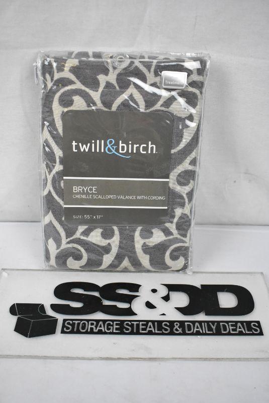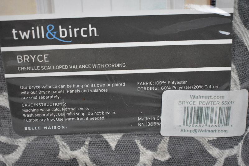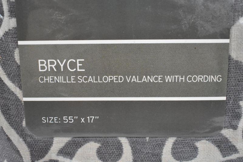 Window Valance, Gray Chenille Scalloped with Cording 55x17 - New