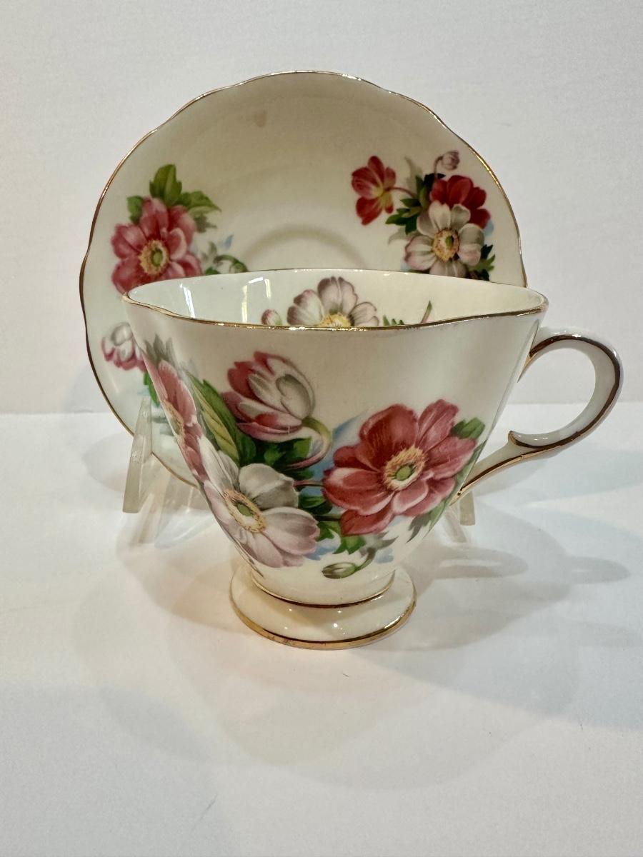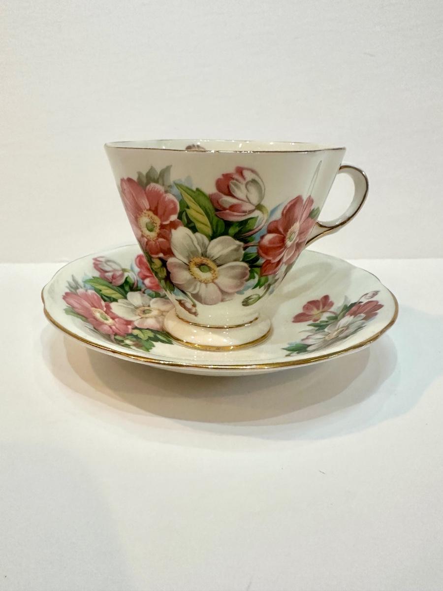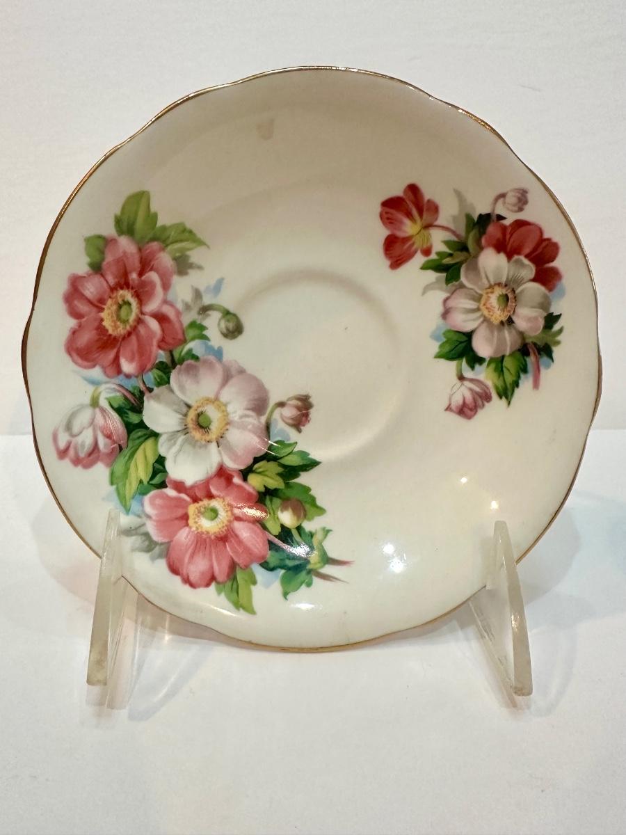 Scalloped teacup and saucer. Beautiful, vibrant colors!