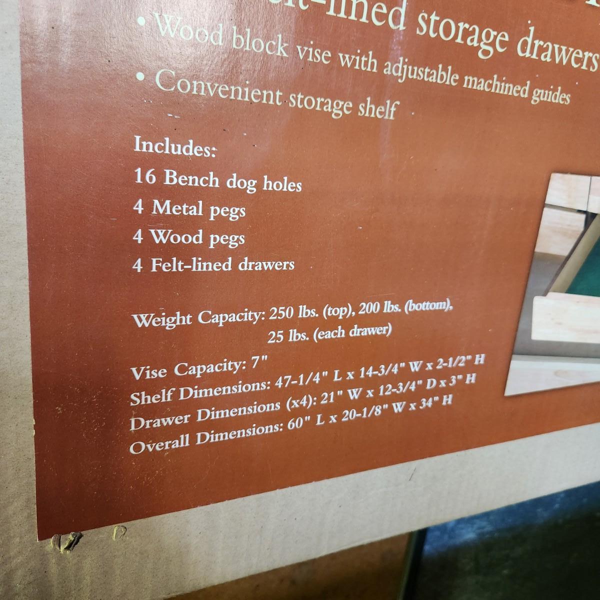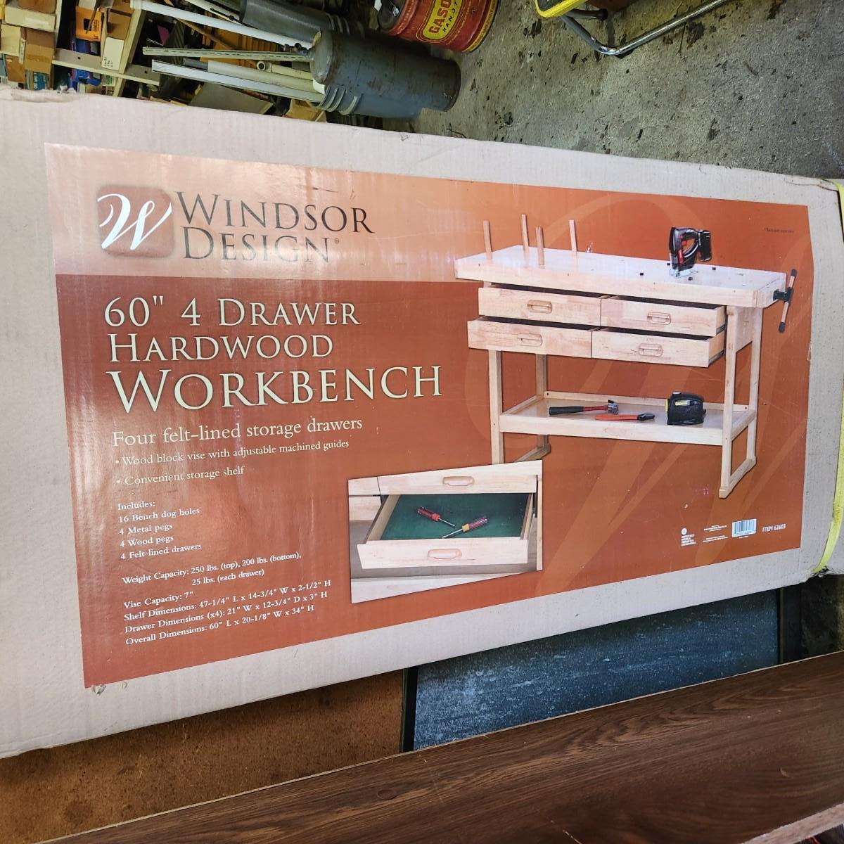 Windsor Design 60" 4 Drawer Hardwood Workbench New in Box Craft Table