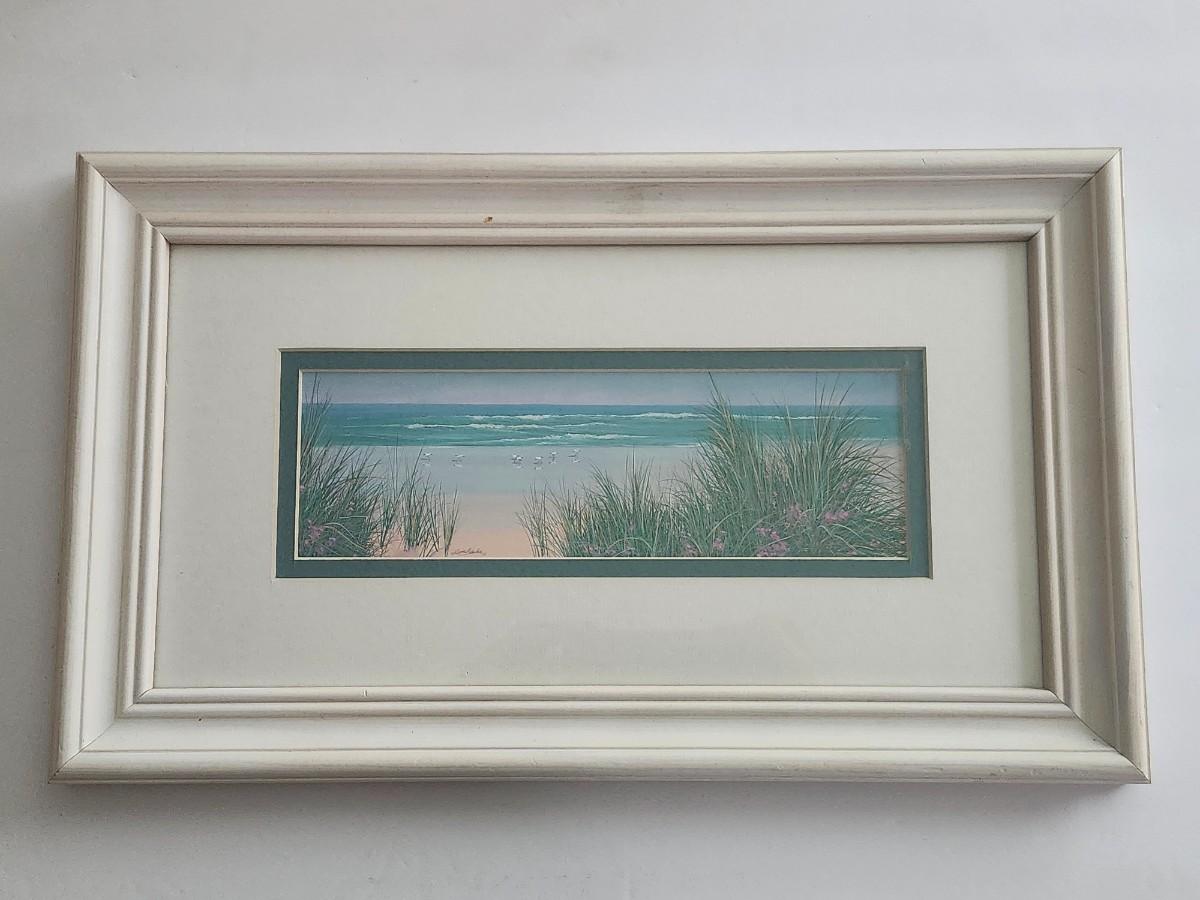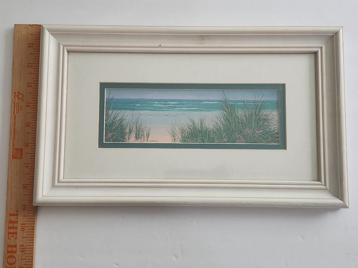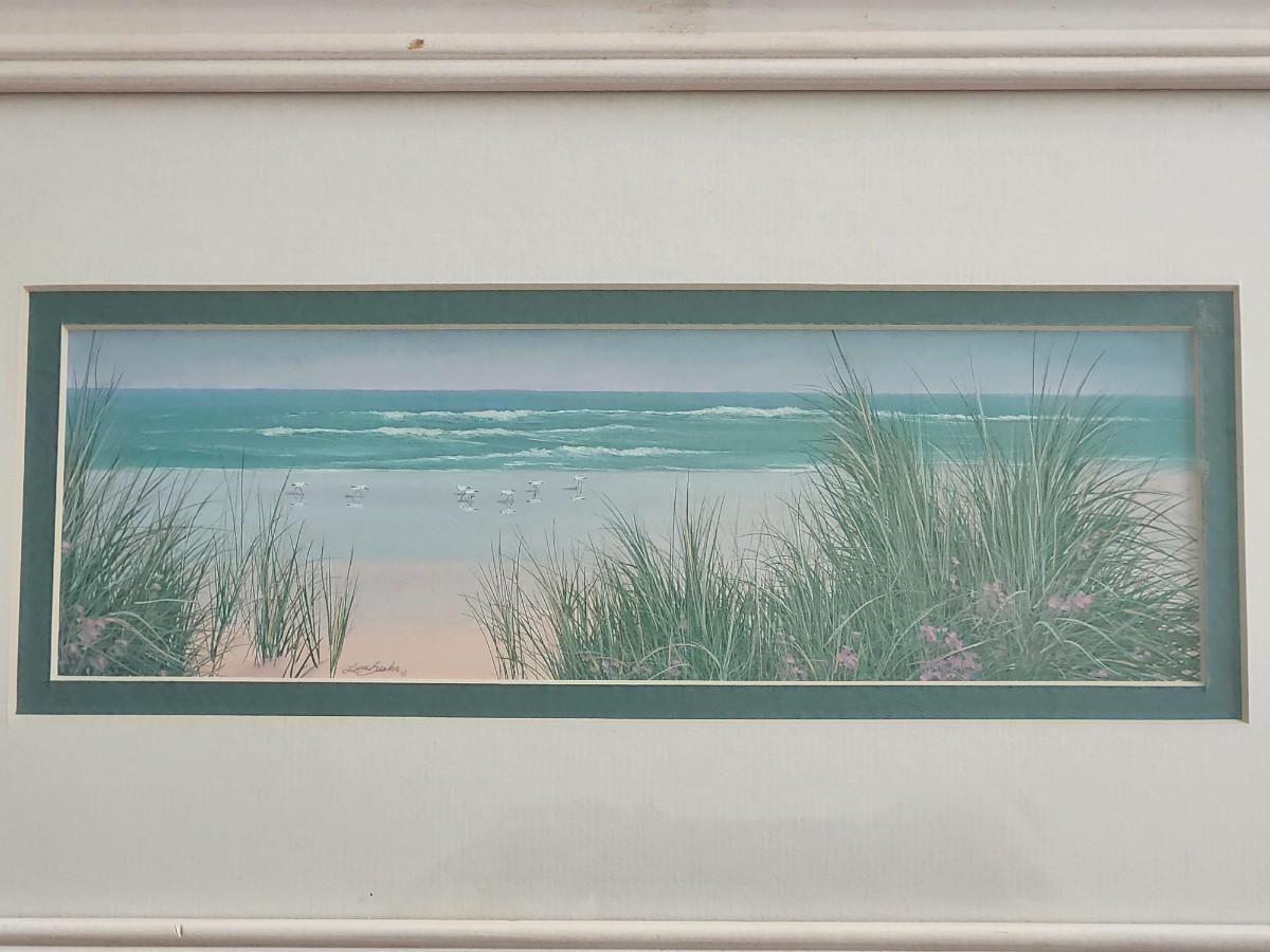 Windswept Dune Framed Coastal Landscape Print Signed Lin Seslar Beach Scene With Dunes And Shoreline