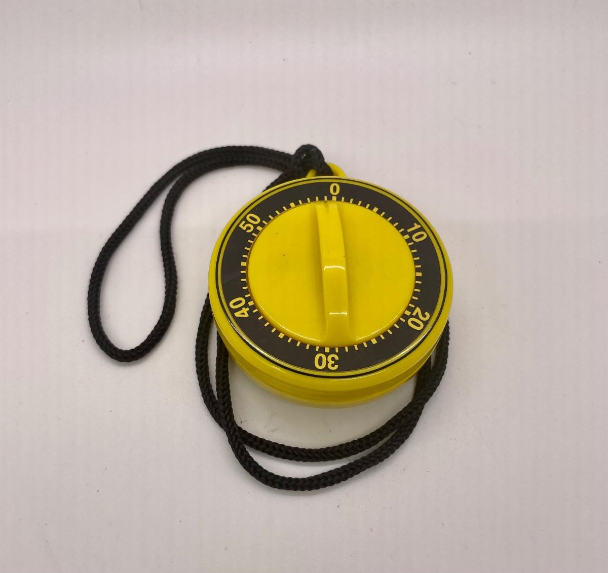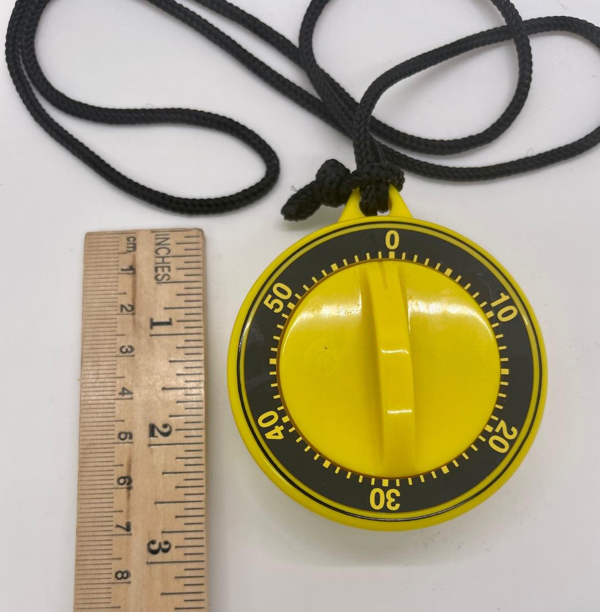 Wind-up Kitchen cooking Timer. Excellent for outdoors or camping use. Has lanyard neck cord for hands-free use and magnet on back, will adhere to any steel surface. Tested, works great.