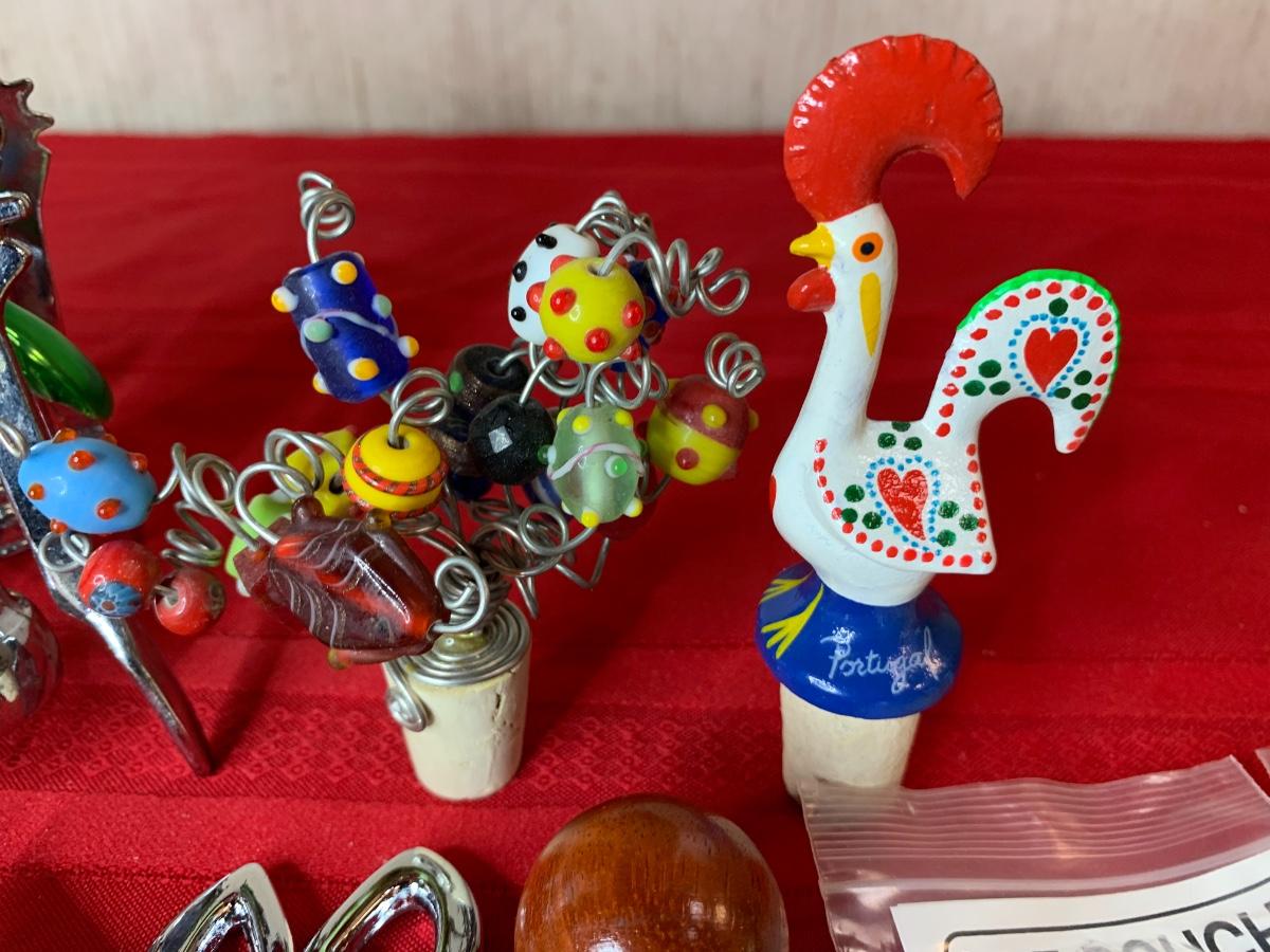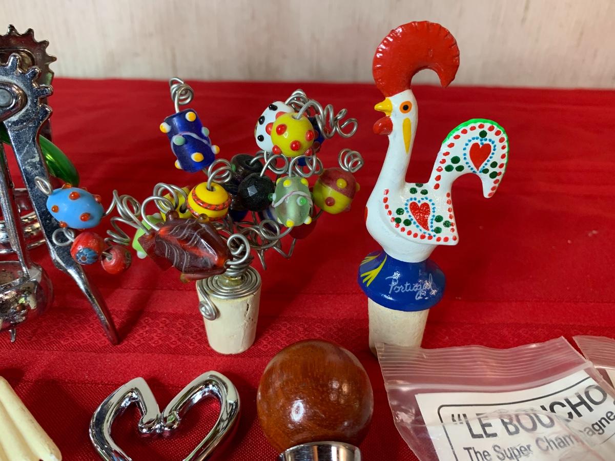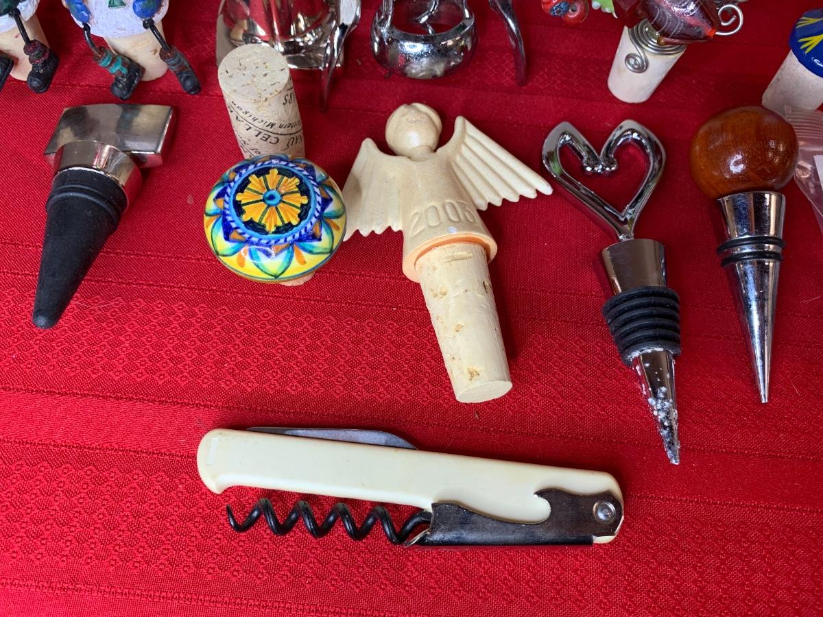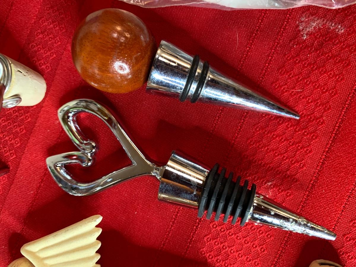 Assorted ornate wine corks and corkscrews, perfecting for entertaining around the holidays!