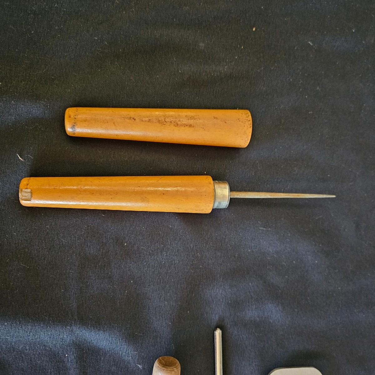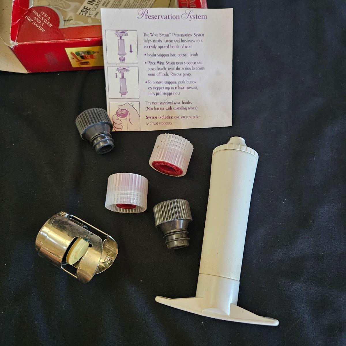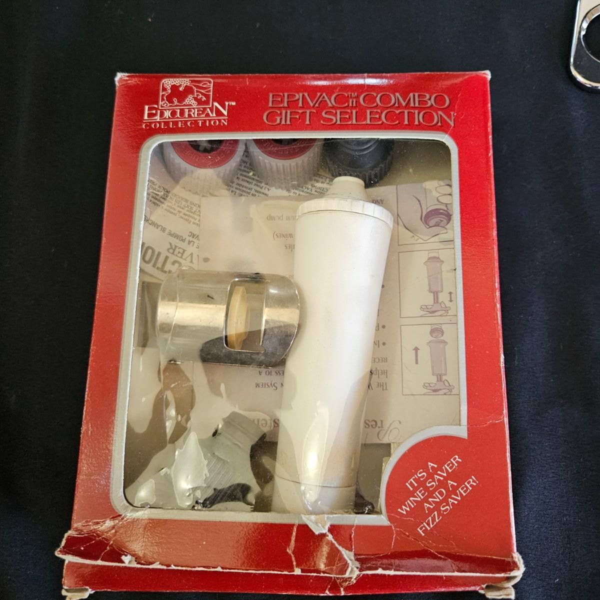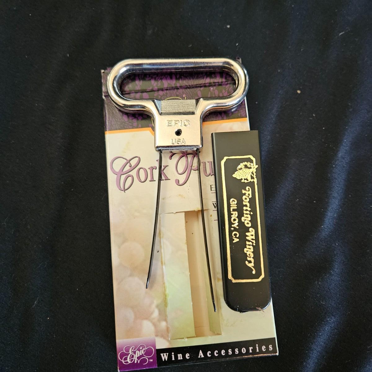 An assortment of wine and cocktail accessories that includes two ice buckets, two martini glasses, an ice mold, cork pullers, tongs, ice picks and more. The cork sided ice bucket measures approximately 8.5" x 10"H. Shipping available