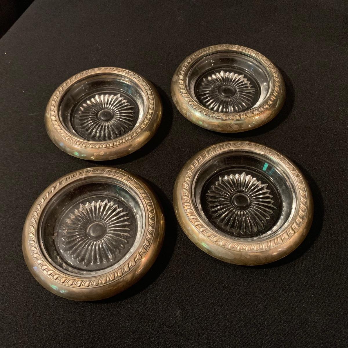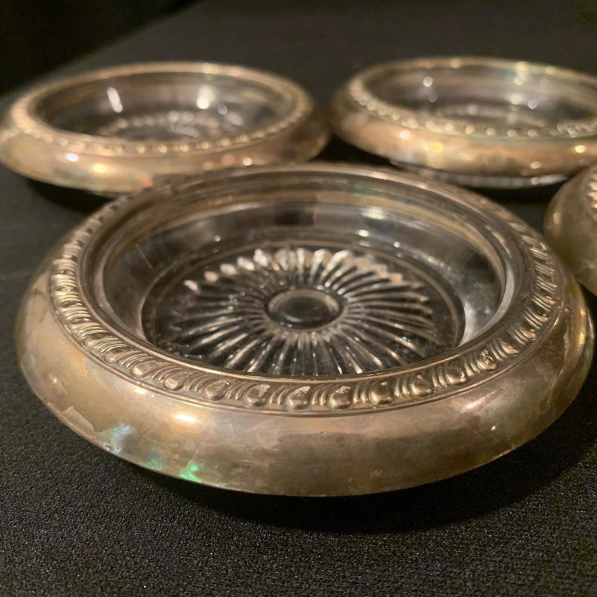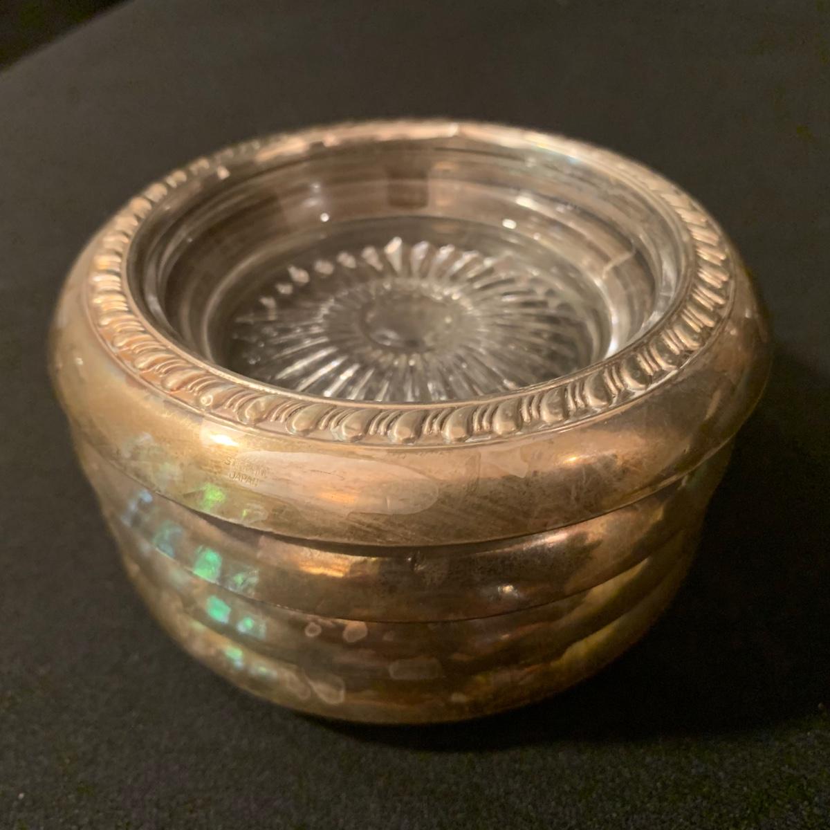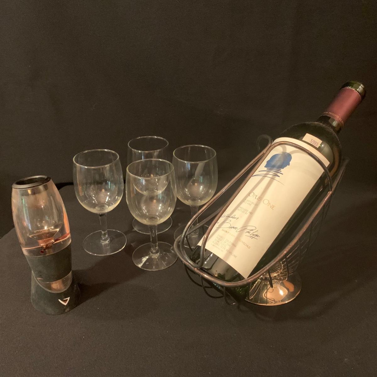 Wine and Cocktail Hour accessories lot includes four Sterling silver and glass ashtrays, four wine tasting glasses, glass cheese plate, Venturi wine aerator, terracotta wine chiller, six cocktail napkins with holder, seven glass coasters, snail cocktail forks, metal wine glass holder, and six colorful shot glasses. Please see photos for more details. Terracotta wine chiller measures, 4.5”D x 9.5”H. Wine bottle only in photos to show bottle holder use. Wine bottle is not included. Shipping available.
