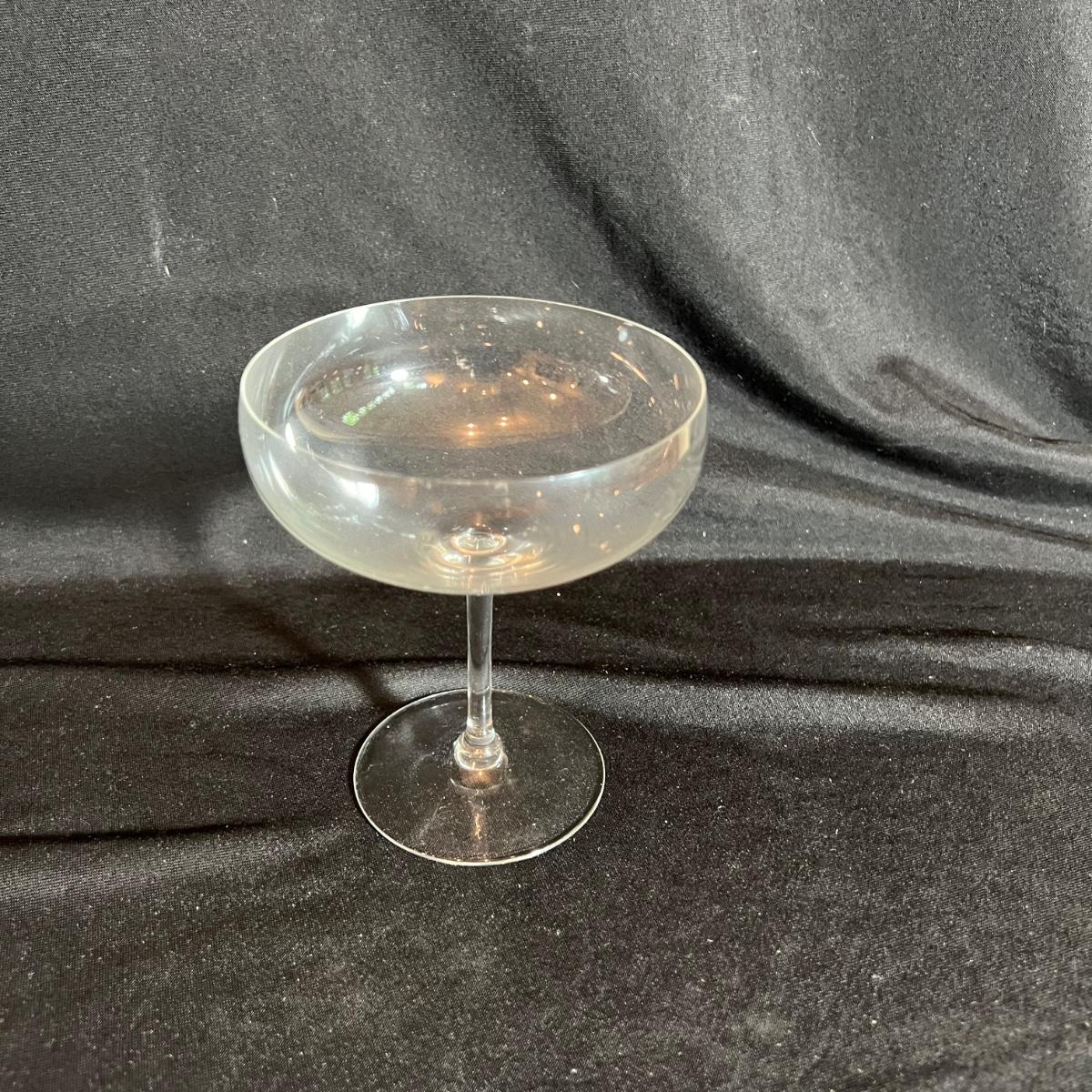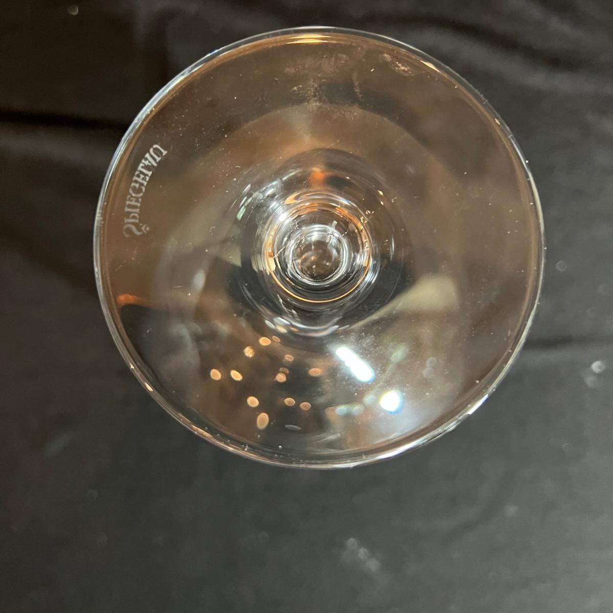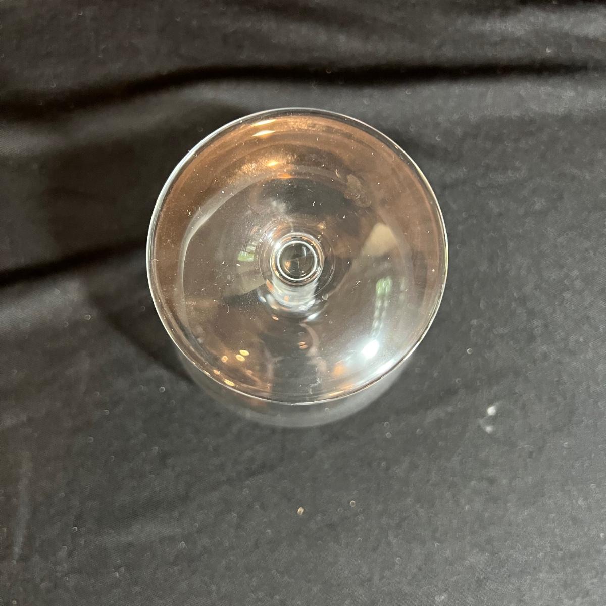 Six margarita-style glasses each 4.5”D x 5”H and six Spiegelau wine glasses approximately 4”D x 9”H.