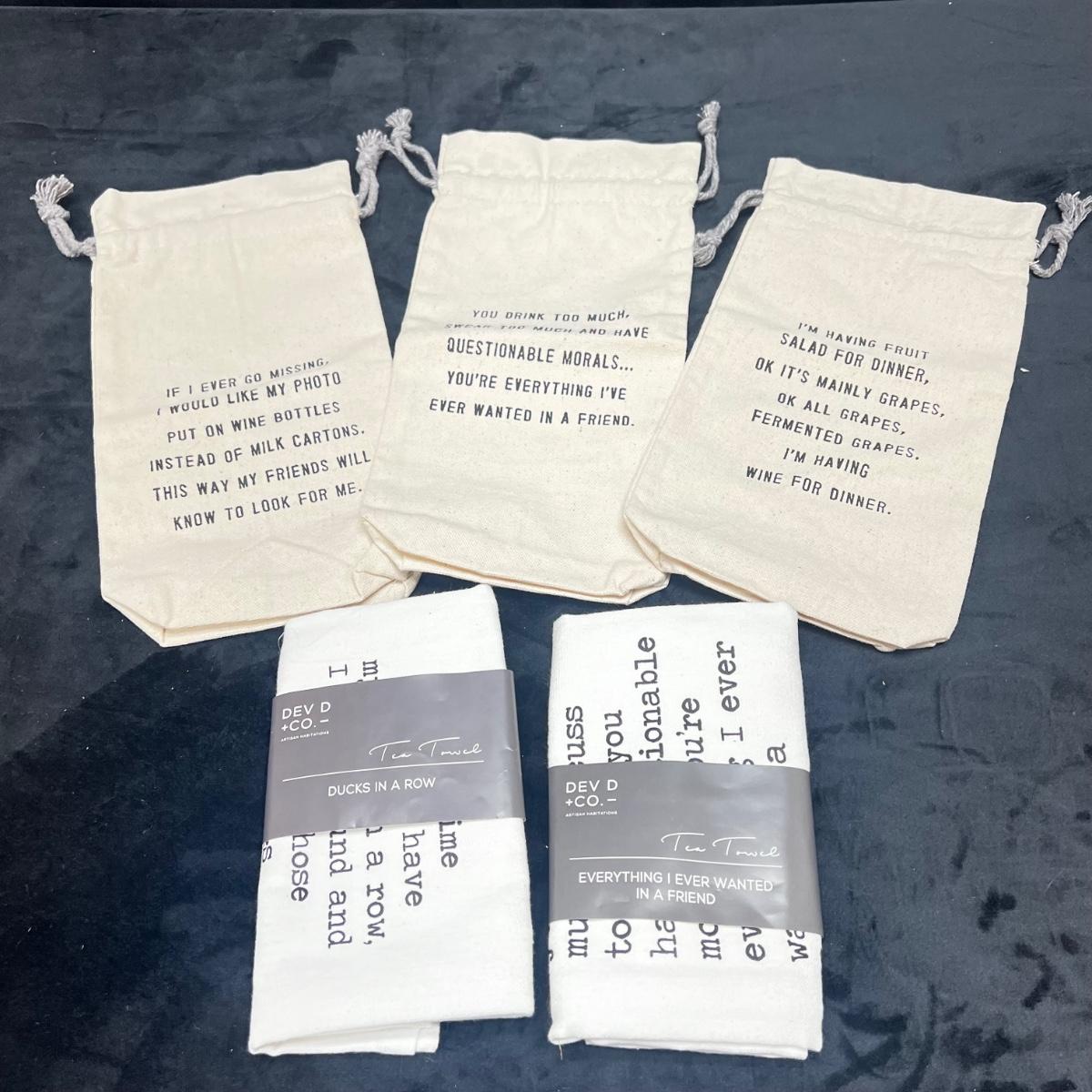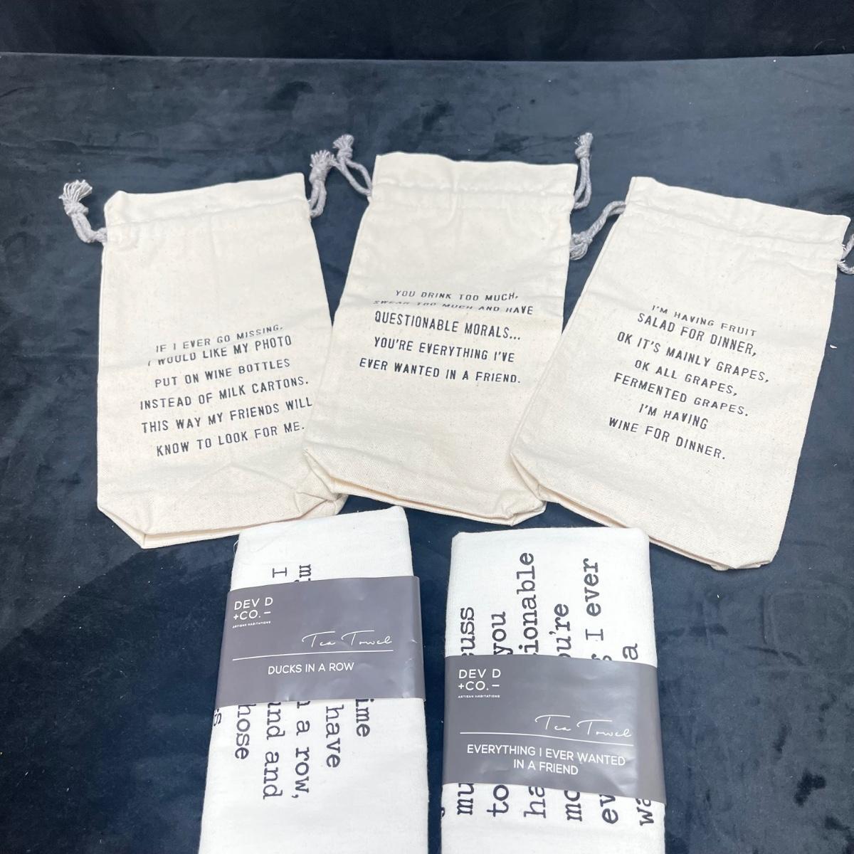 3 Canvas Wine Bags & 2 Kitchen Towels New