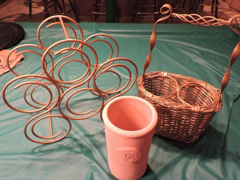Wine rack, wine basket, and wine chiller. **Please read Terms and Conditions before placing a bid. Pick up is Sunday, September 15, 2019 from 11am to 4pm and Tuesday, September 17 from 4pm-7pm in Sicklerville. All sales are final. All sales are as is, where is. Please review all photos. Any props included in photos are not included in listing. All measurements are approximate.