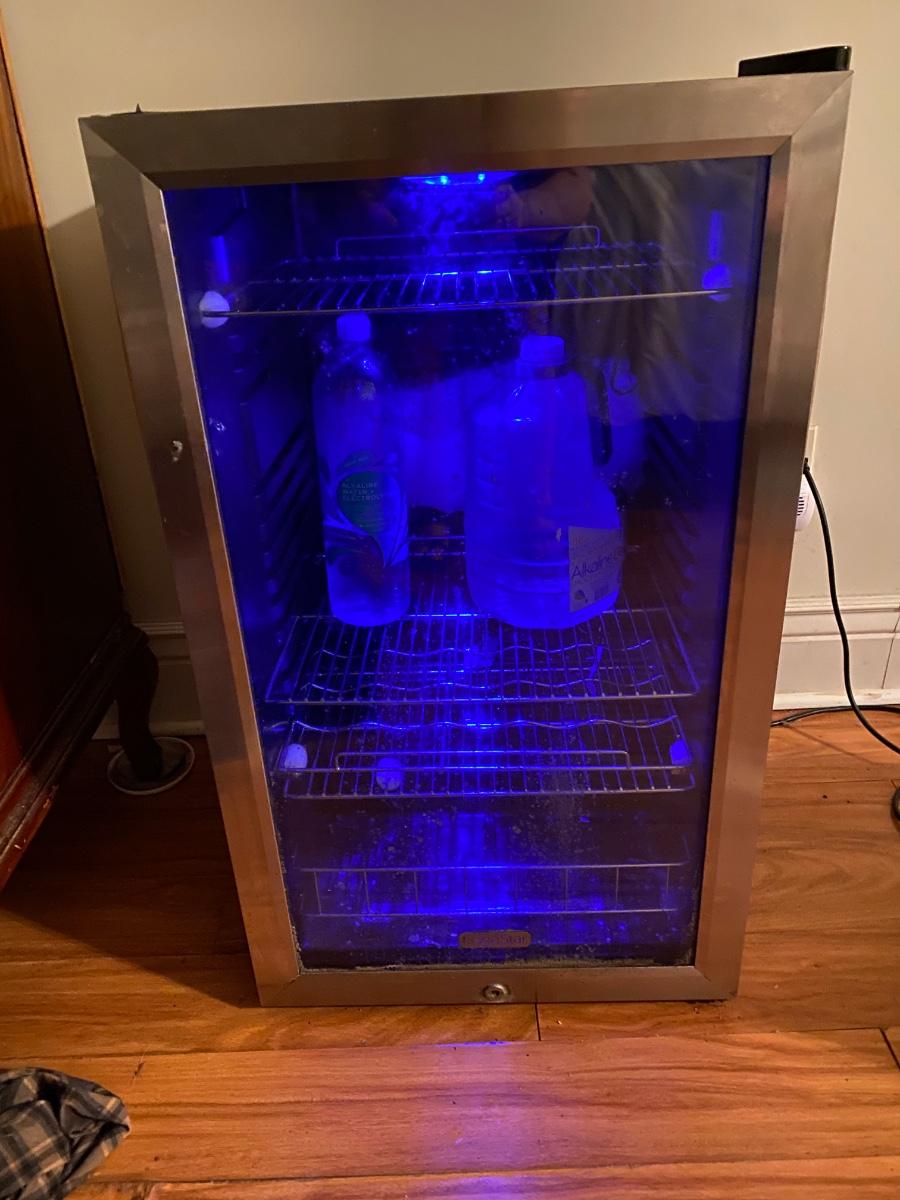 Mini fridge/Wine cooler. Works great. Shelves are adjustable